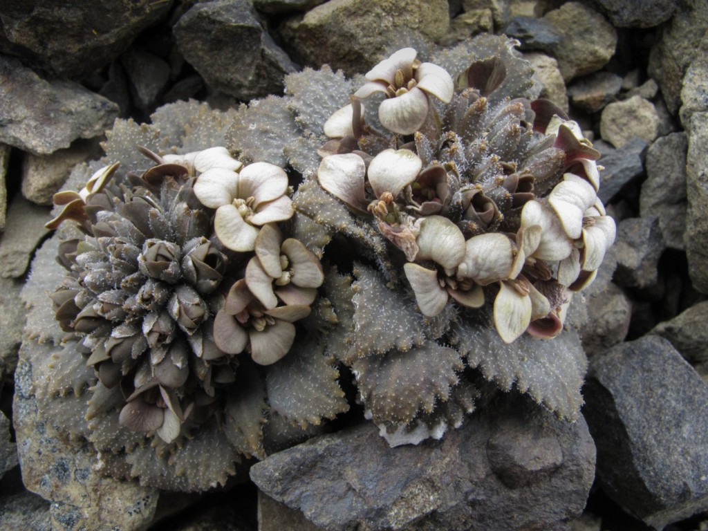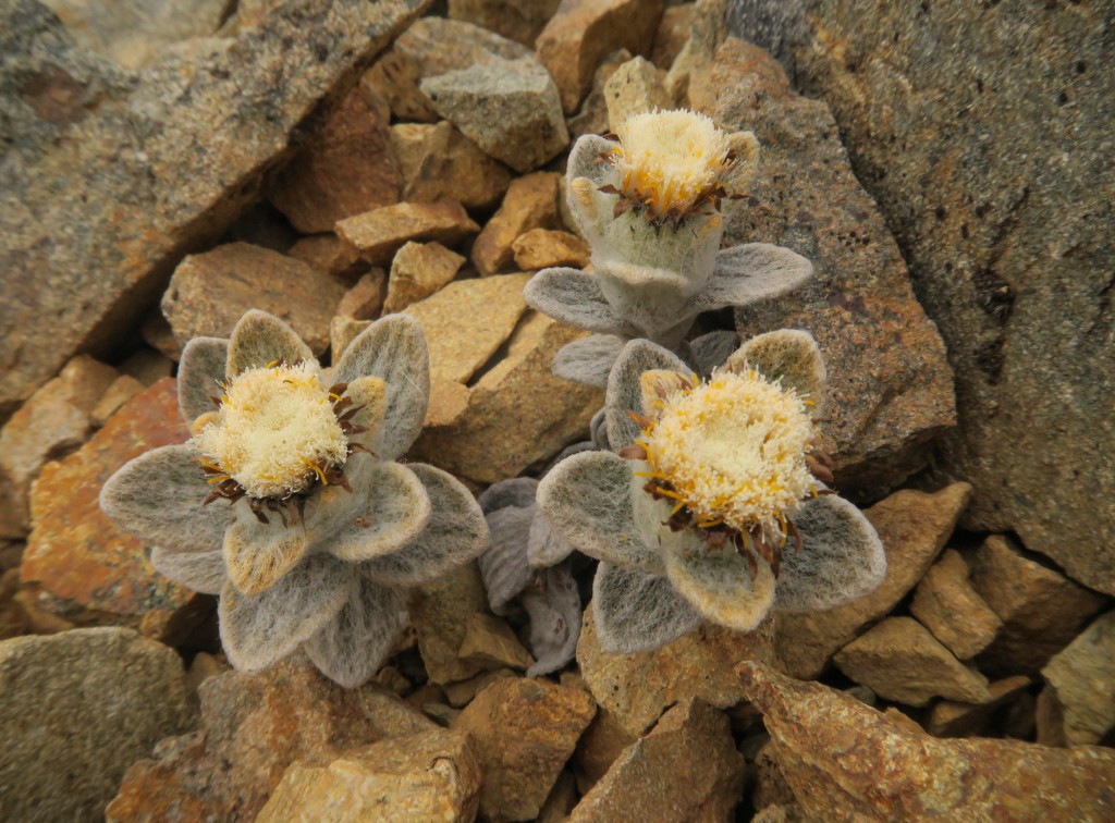 This quaint alpine scree plant has been captured well showing off its flower heads and hairy leaves in its natural habitat