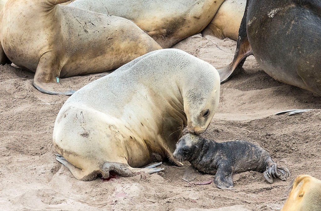 Hookers Sea Lion with newborn pup