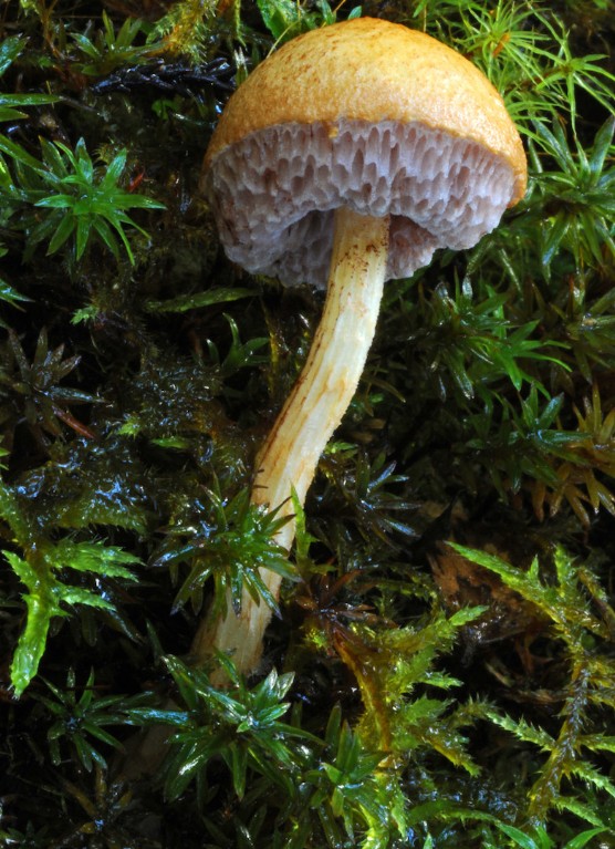 A good study of this fungus. Cap gills stalk and environment, and scale gauged from the moss