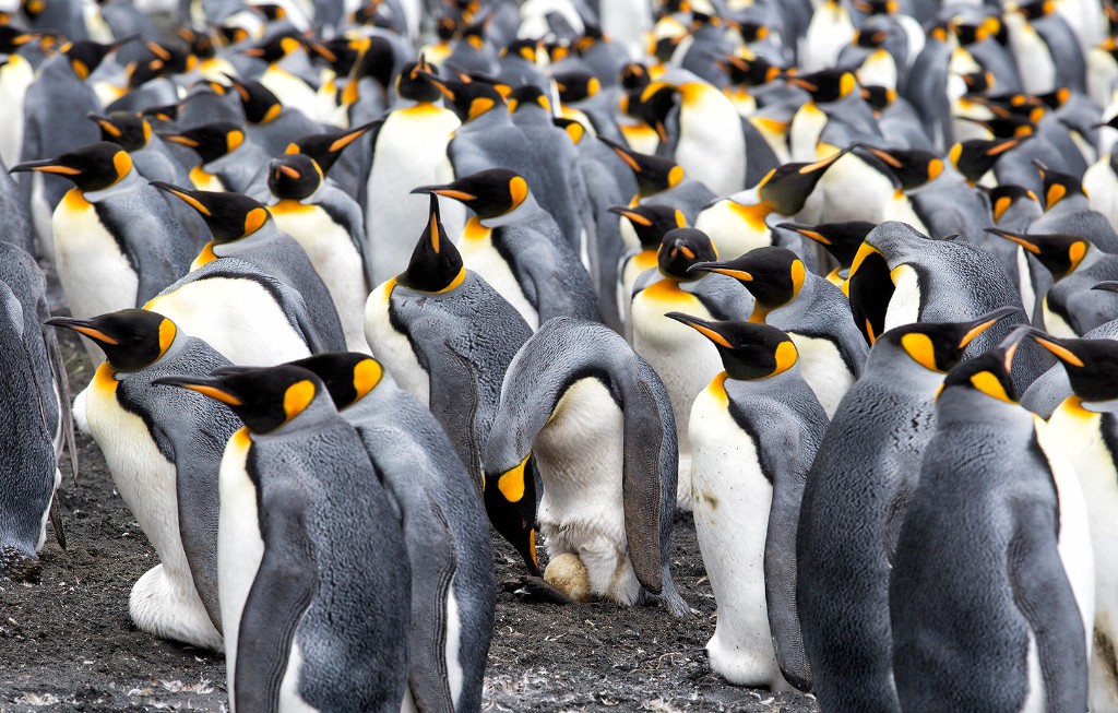 King Penguin colony incubating eggs (Aptenodytes patagonicus