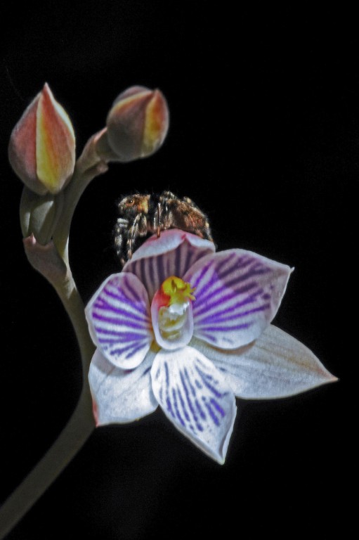 It is a good study of this sun orchid, but a little difficult to see the spider. I tried increasing the exposure, clarity, and doing a bit of sharpening for my version