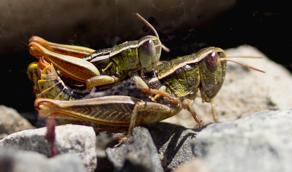 New Zealand Grasshopper mating (Phaulacridium marginale )