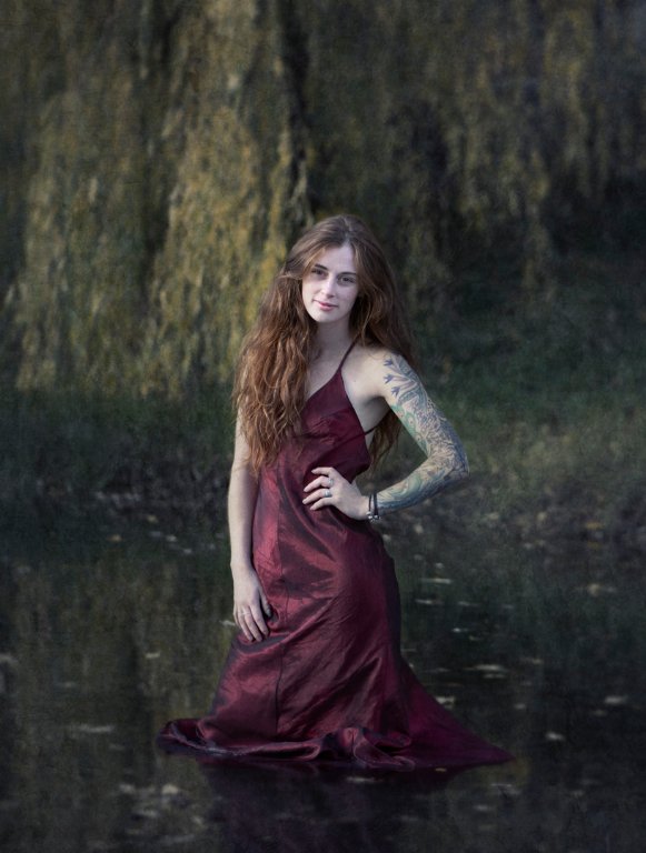 GEORGIA – MERIT – Excellent choice of paper for the subject the matt paper adds to the art quality of the Image. I like your choice of model she is edgy as is the setting, what lets it down for me is the pose and expression she looks less than impressed like why am I standing in a pond and that’s a good question? Why is she standing in a pond? If you are going to get a model into a site like this it needs to look believable like she is wading out to drown herself or going for a quite swim on a warm summers day something but I don’t know anyone that would wade out and stand around with their hand on hip. That aside it is a very good attempt at pushing boundaries and you have succeeded in all but her expression and pose. Keep experimenting.