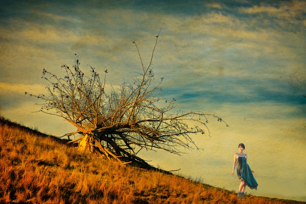 The lovely rich light adds to this well composed print. – The girl is nicely placed – I like that her frock echoes the sweep of the tree branches..