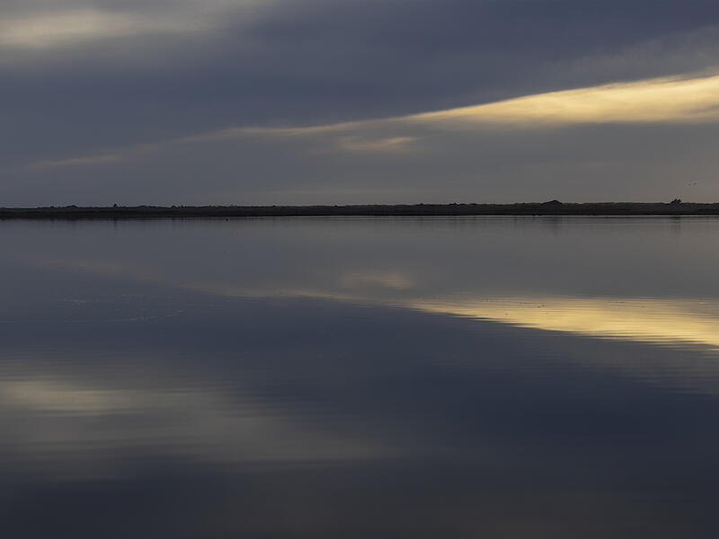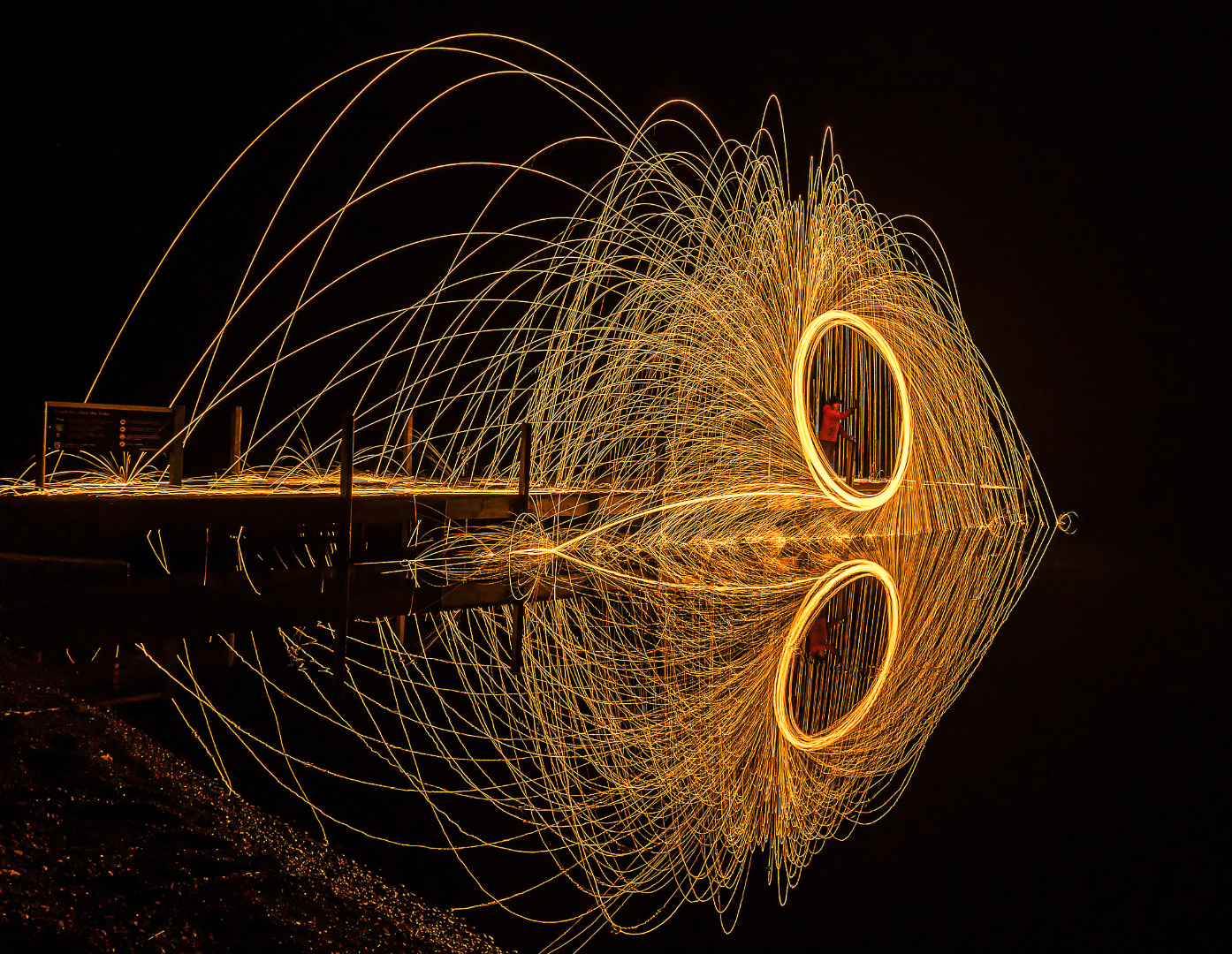 A great image. The still water and the reflection make an intriguing image. With a some contrast the light lines will pop. Honours