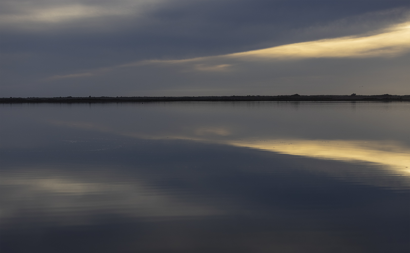 A peaceful scene it's pleasing to see that the break water is not placed in the center but up almost into thirds. A crop on the left where the light starts to create the V would enhance the picture. There is a small dot on the right-hand side, in the light reflection which needs to be remove as it is distracting. Merit