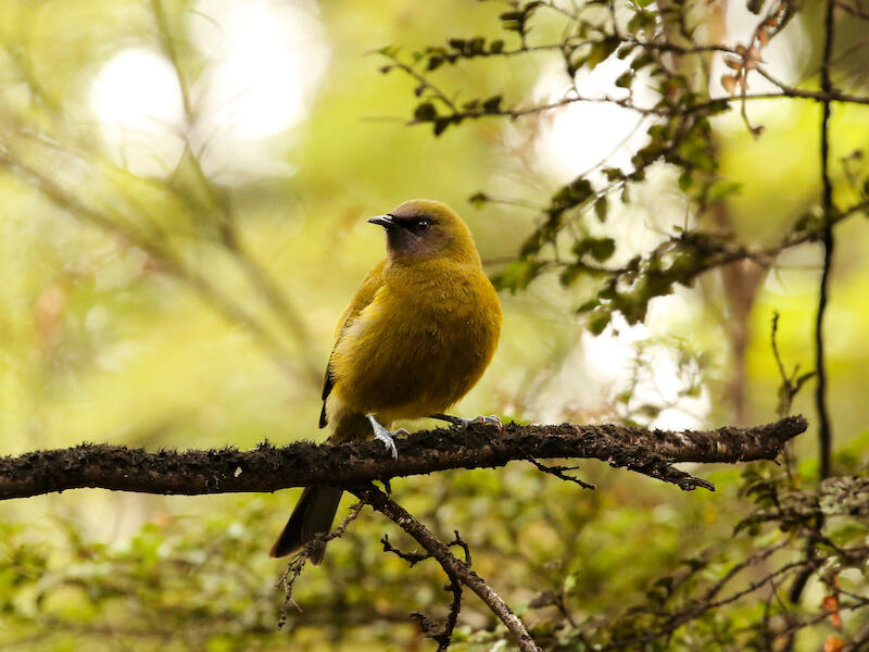 Great shot of the bellbird. Good catch light in the eye. The highlights need to be lowered as they are distracting. By cropping the image the effect of the hot spots can be reduced. Cropping will enable the viewer to see a larger image of the bird. Try opening up the shadows to show more of bird’s breast and feathers. Merit