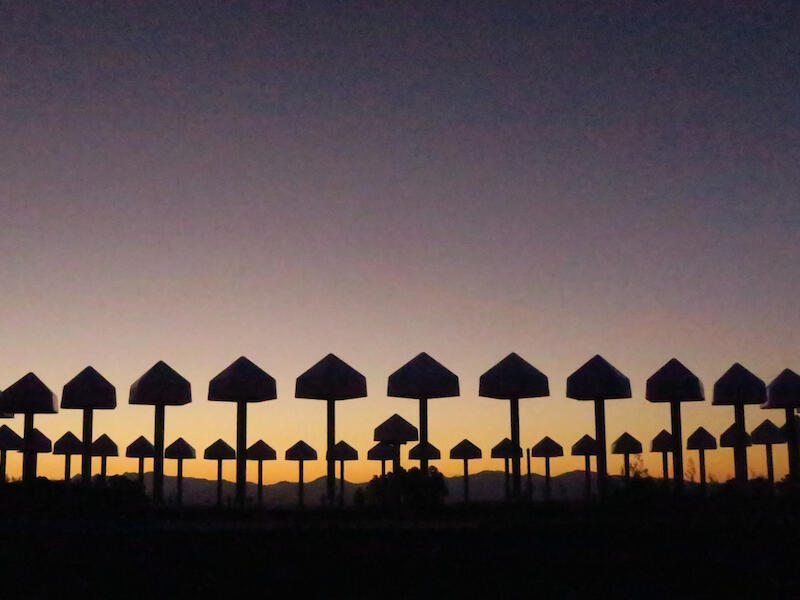 A beautiful evening sky with the silhouette of the sculpture and the hills makes it an interesting photo. There is colour noise in the sky. This is a common problem with night-time photography. This can be reduced or eliminated by using the luminance slider. Reducing the colour noise would give the image even cleaner look. Merit