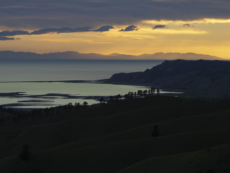 Composition is good. By opening the shadows the folds of the landscape would be revealed and would balance the photo. A little contrast would enhance the sky. Merit