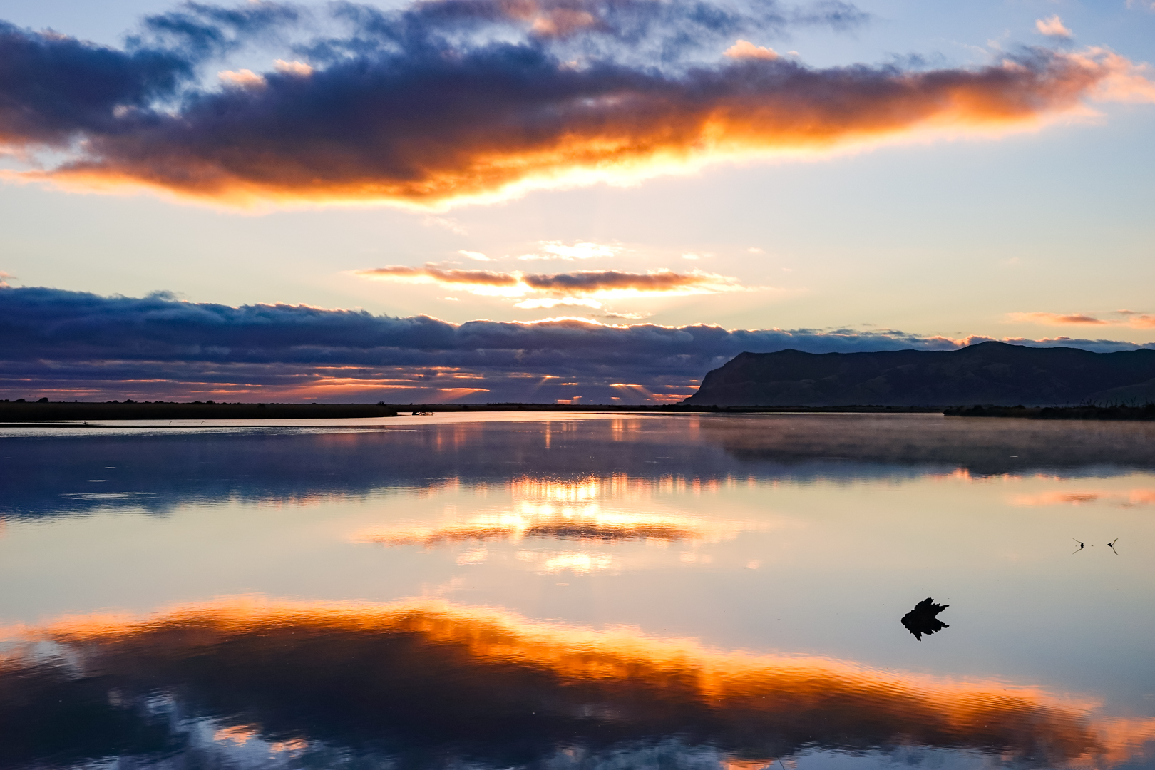 | C | sunrise reflections | Perhaps too much of a good thing which divides the interest between top and bottom. Suggest you crop half the sky to below the big cloud or even into that lovely dark cloud to ensure focus is on the reflections and that piece of wood which adds interest in a plain area. |
