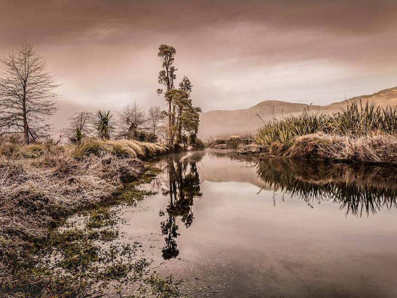 | A | Early on Lake Mapourika | To me, this conveys everything the given definition of landscape seeks. It truly captures a sense of “space” and “place” and tells a story of the scene. I particularly like the bottom branch on the focal tree, and the way the cobwebs are lit. Lovely work. |