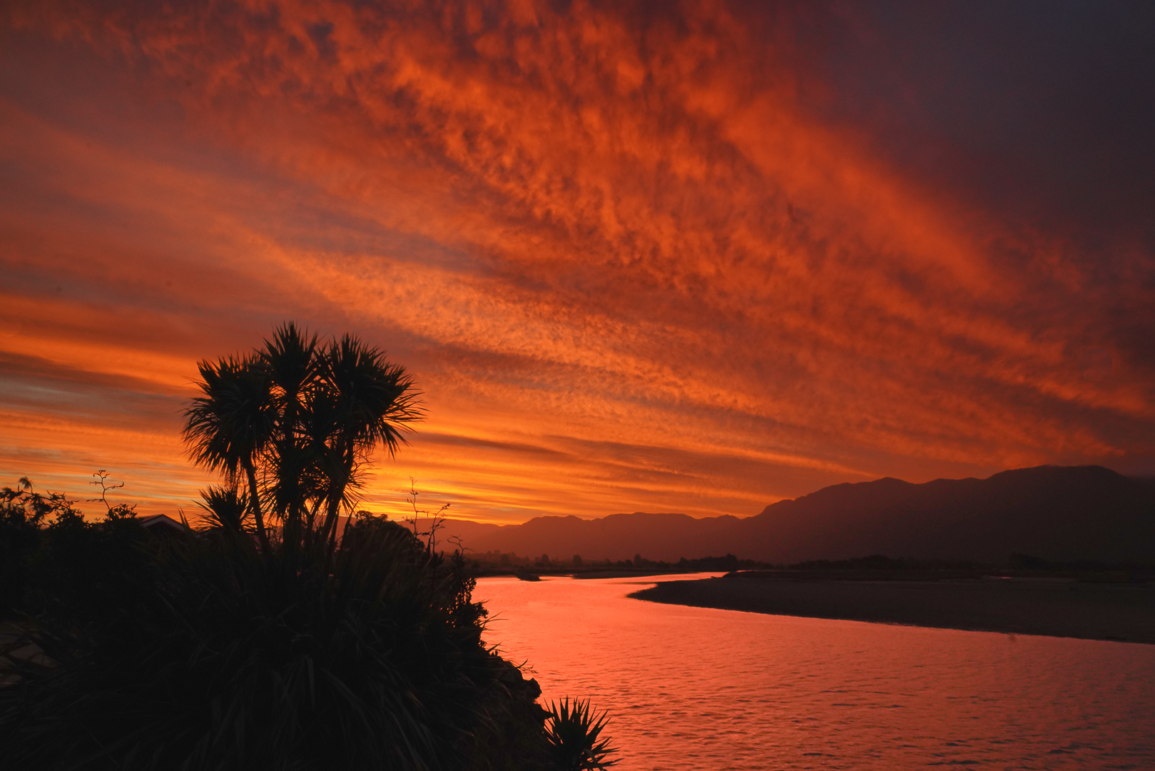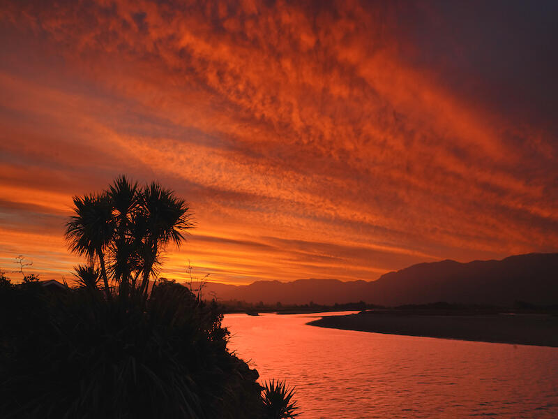 | B | Sunset at the Aorere river mouth Collingwood | A glorious sky with a strong focal point in the cabbage tree and good reflection in the water. The dark top right corner is a bonus, retaining the eye in the frame. |