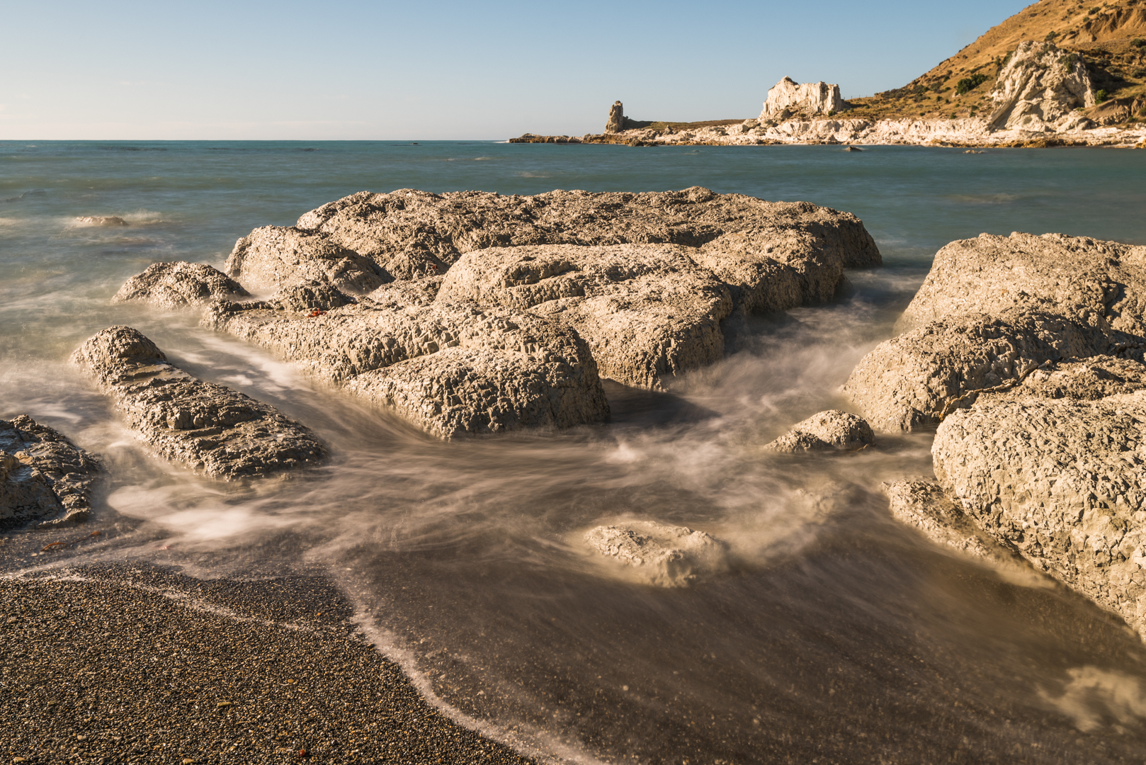 | A | Ebb 'n Flow | Good still textured rocks contrasting with the smooth movement of the water which has a veil-like appearance in the foreground. Good arrangement with the eye being led through to the focal point of the white rock on the headland. |