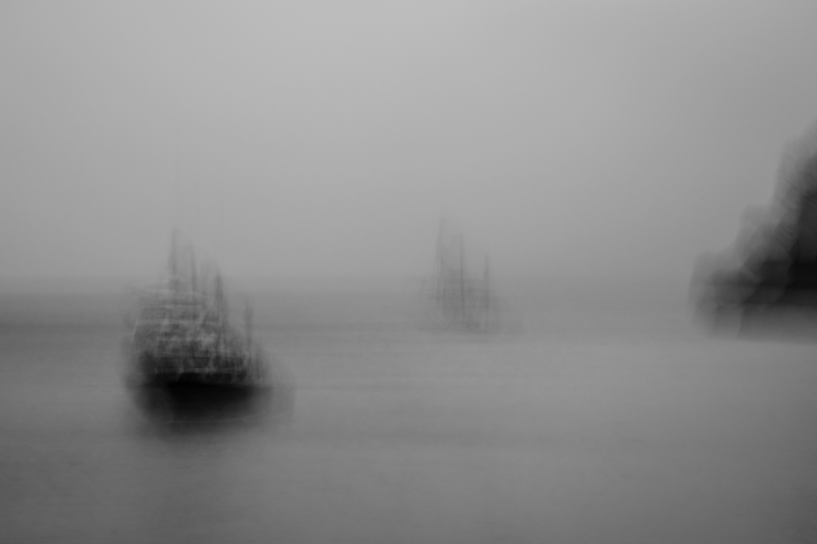 | French Pass | I think the focal point is a boat which leaves too little land to be a landscape according to the definition, in my opinion. If I'm wrong I'm sorry, but it makes no difference to the placing and abstraction. Good to see experimentation. |