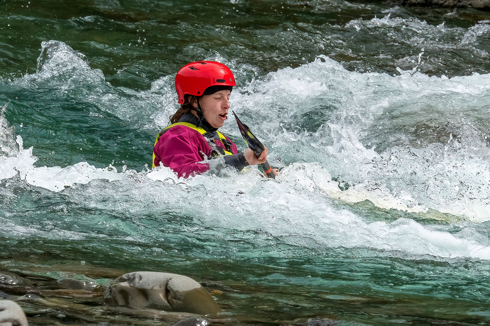 I was drawn to the kayaker/ canoeist by the lines of brighter tones and the colour contrast. I liked the way the brighter tones in the water implied a movement from left to right of the image. This feeling of motion was reinforced by the direction the canoeist is facing. In one sense the image gave me sense of excitement and in another sense, it gave me a sense of tension. The excitement I felt came from the experiences I have had canoeing on rivers many years ago while at university and the sheer exhilaration of going through a bit of white water. The tension I felt was about whether the canoeist might have lost control and had shut her eyes expecting an inevitable dunking, or maybe the photographer is having a laugh at the canoeist’s visual approach in the white water. Overall, I found the image quite engaging, and I particularly liked the way you have kept the lower two thirds of the image as one rectangle by making the top third an implied rectangle using tonal difference. I would have rated this image more highly had I not felt some ambiguity in the visual story. |
