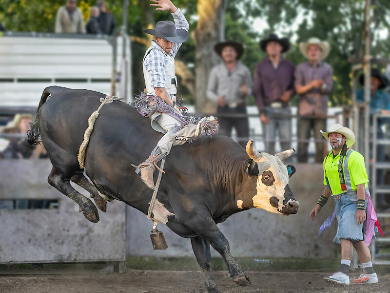 I wasn’t particularly clear from the composition why the title asked me to pay attention to the hand up toward the top of the image. I liked the way you have included three complementary elements to the sport of bull riding. The bull and its rider, the rodeo clown who acts as a safety valve for the rider and the spectators who seem to be really enjoying themselves. I enjoyed the way the depth of field provided me with a sense of inclusion of the rodeo clown in the story and the blur on the spectators which for me gave them a largely supporting element. The action of the bull suggests a strong sense of dynamic and danger and this is strengthened by what I see as a little bit of dust stirred up around the front legs. The bull’s eye also suggests it is not very happy about the situation. It seems to show a degree of anger about what is happening. For me well put together composition and a very clear story that a viewer could connect with. |