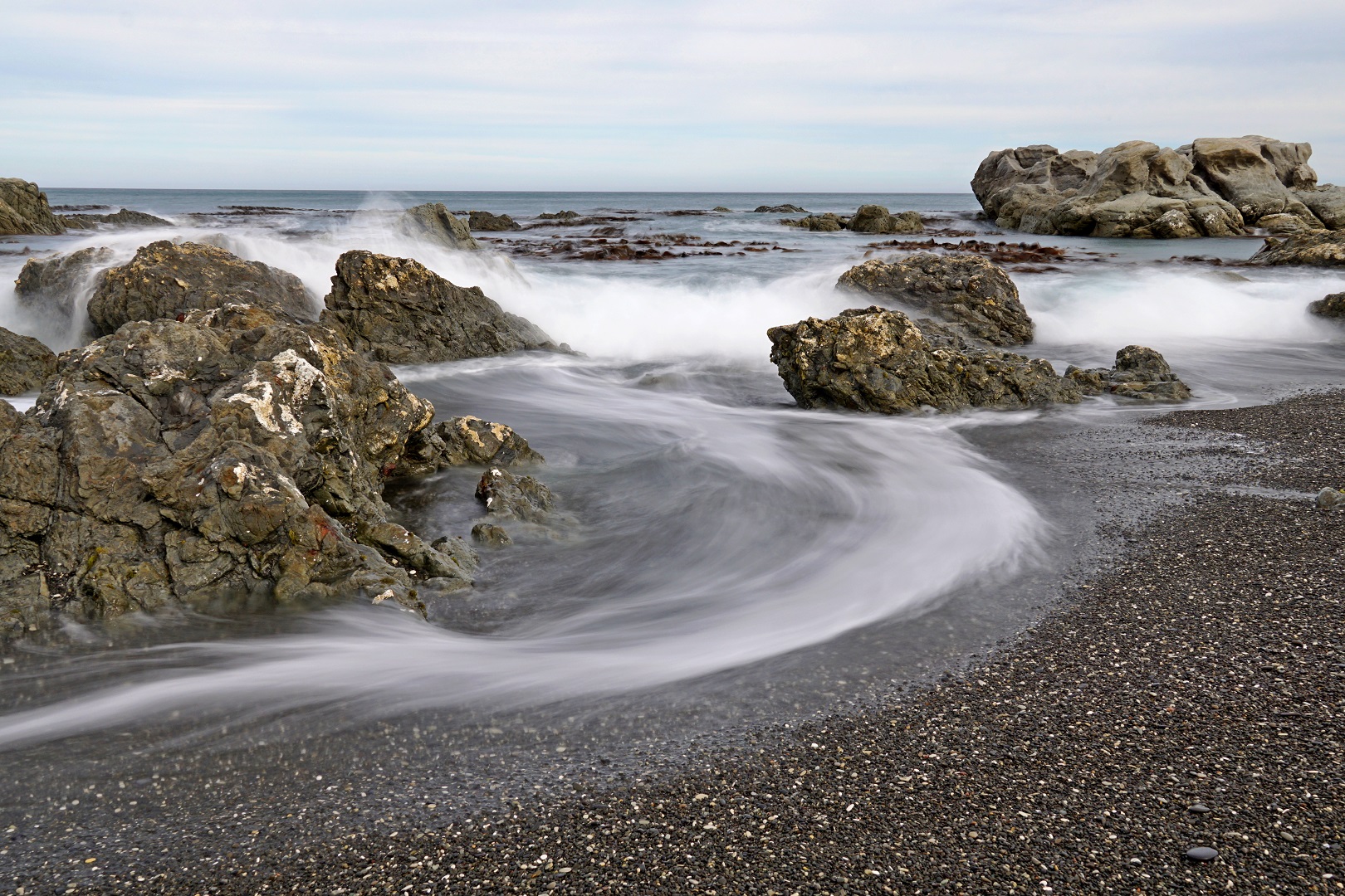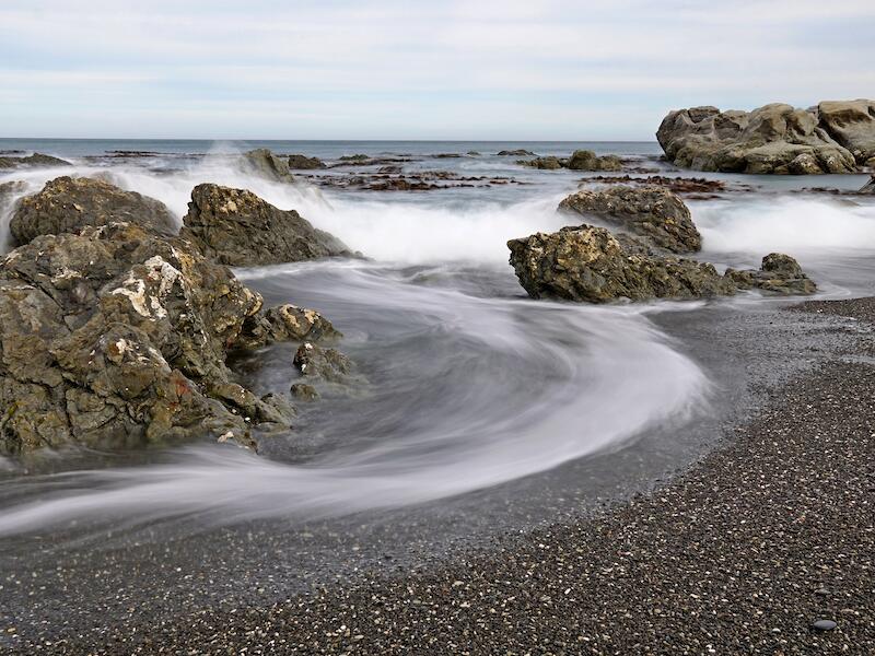 I really enjoyed the meeting of the stream and the sea with a bit of action from the waves as well. I love the flow of the stream which is created by the shutter speed selected and this also creates an energy impression in the waves on the shoreline. I liked the exposure generally, as all elements have nice light and all textures on the rocks can all be seen clearly. I did wonder if the image might have a stronger impact if the pebble beach area in the right corner was brightened a little, perhaps by using a linear gradient from the right corner or a brush tool. I felt that would have created a stronger connection for me to your story. |