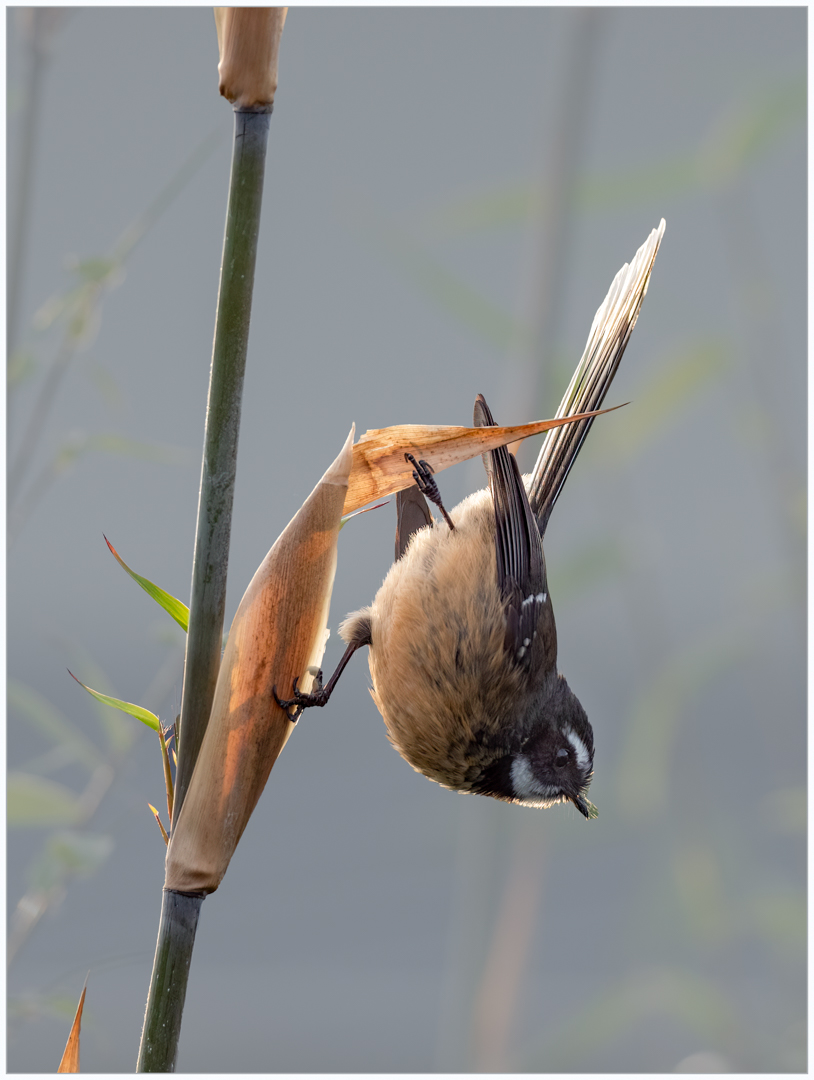 This image warms my heart. These are so cheeky and fly around your feet when you are near them in case you kick up some food for them. Excellent depth of field achieving a muted background with just enough detail to show the environment in which the subject has been captured. I find the side lighting from the sun has given the Fantail a lovely rim which highlights the contours of his body. Lovely catchlight in the eye and good detail in the feathers and reed. Excellent composition with the reed slightly leaning into the frame with enough room in front of the subject. My only slight recommendation might be to clone out the small brown point on the bottom edge of the frame which is distracting. Well seen and captured. |