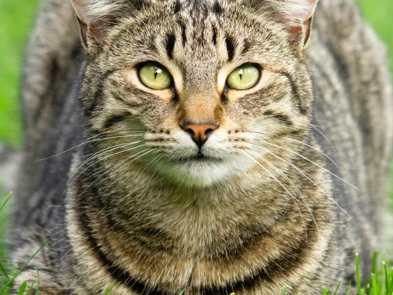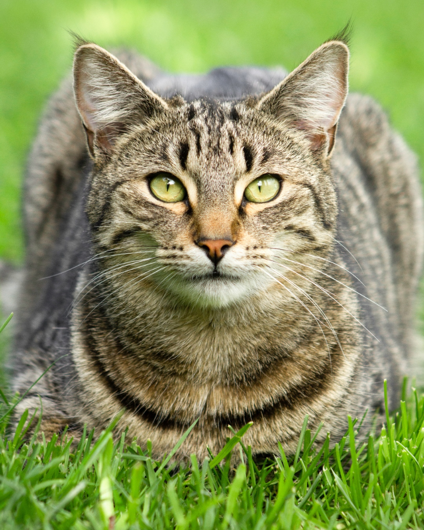 Looking at this image I immediately think I am glad I am not a mouse. Can you image looking up to that face if you were. I like the fact the photographer has taken a very low perspective of the subject and filed the frame making it dramatic. You have captured the attention of Elliott perfectly looking straight at you and the camera. I love the little tuffs of fur on top of his ears. Excellent depth of field with sharpness in the eyes, face & whiskers with a fall-off of focus towards the body. Good catchlights in the eyes. My only recommendation might be to tone down the green background and foreground as I feel it competes against the subject. Well done. |