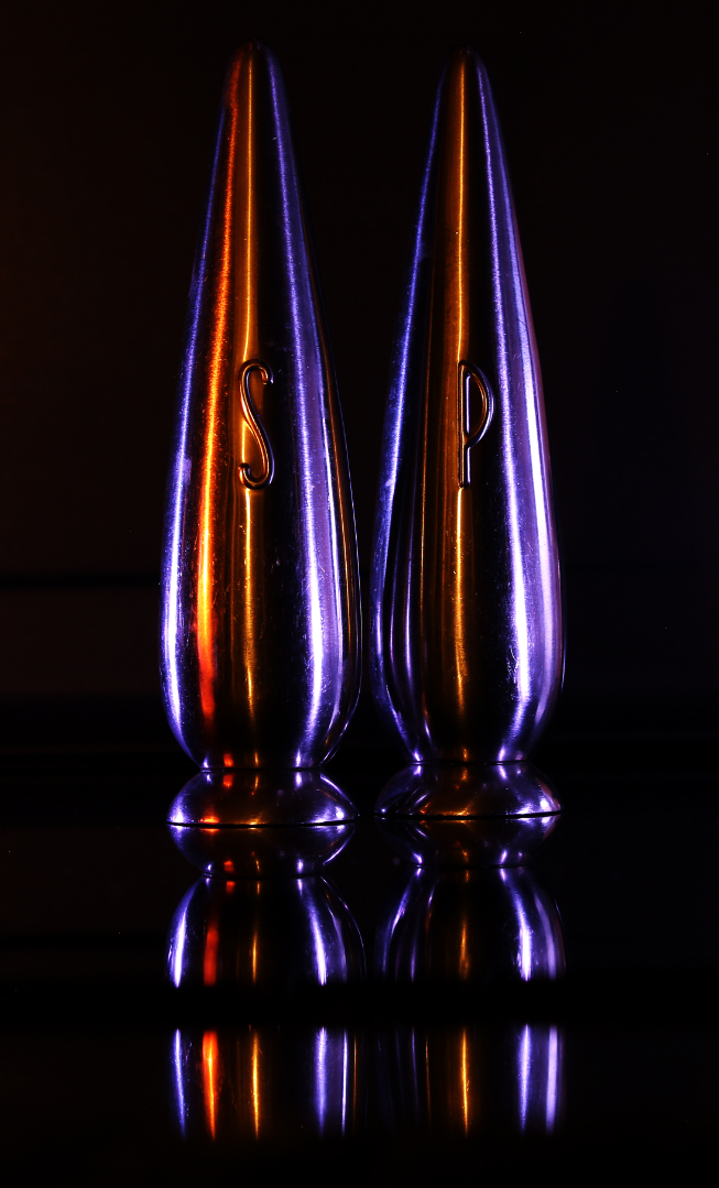 I feel like I am in a posh restaurant looking at these and wonder what awaits me for dinner, not something Around the House well-done. I find the lighting the photographer has used has made the subjects come to the fore. Compositionally I find the subjects have separation and good symmetry. I like the chosen black background which to me helps the subjects stand out. I find the chosen colours work very well together. My only slight recommendation or concern might be I feel the reflections are slightly disjointed with the black line running through them. I cropped off a little with my hand and this made a different view so I feel it is a personal choice and it was your choice to include them. Well executed |