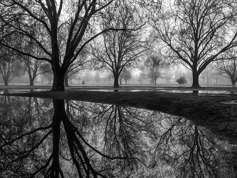 | Puddles and Mist | H | A nicely handled monochrome image starkly reflecting the feel of a foggy winter morning in Hagley Park, Christchurch – I believe. The monochrome conversion has been rather well handled with good tonal balances although, perhaps with just a little too much contrast resulting in some lack of detail in the shadow areas – the L/H tree trunk, and grass bank around the lower pond area. A little selective lightening in these areas is all that is needed, in my view. But, overall, this is a pleasant image with a good compositional balance with the large tree on the left nicely offset with the more distant trees across the balance of the image. A very suitable subject for monochrome treatment. | |