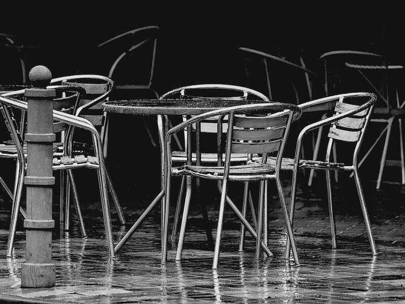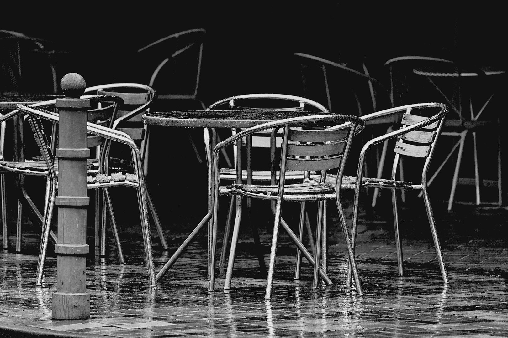 | Rained Out | H | A nicely composed image drawing its strength from a composition around part of this outdoor cafe scene. The monochrome conversion has simplified the composition to allow us to concentrate on the graphic elements without the complication of colour. I prefer this one flipped horizontally with the post on the right and using the space on the left as the lead in, but whichever way, it is an interesting and compelling image. The wet pavement with its subtle reflections together with the suggestion of further tables in the background all combine to give us a pleasingly graphic image. | |