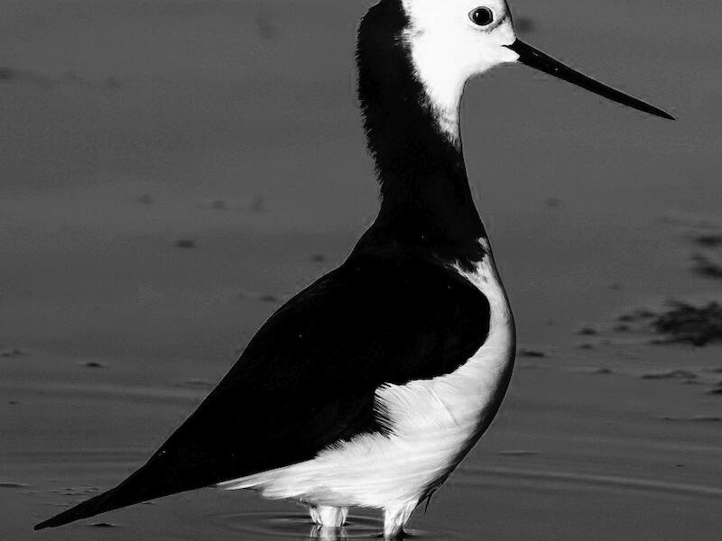 | pied stilt | M | Nicely filling the frame and sharp but an image that is loosing some of the essential fine detail on the body of the bird. Not sure whether you have lost this in the monochrome conversion but the exposure as presented has little, or no detail in the black back feathers of the bird and little in the white feathers, particularly around the head. Perhaps some pulling back of the contrast during the processing would be helpful to prevent this loss of detail. The positioning of the bird is good with the crop nicely filling the frame, as is the out of focus environmental detail around the bird. This should have all lead to a satisfying image but the loss of the important feather detail on the subject and the overall high contrast on this image has resulted in a somewhat degraded representation of the bird. I suggest. | |