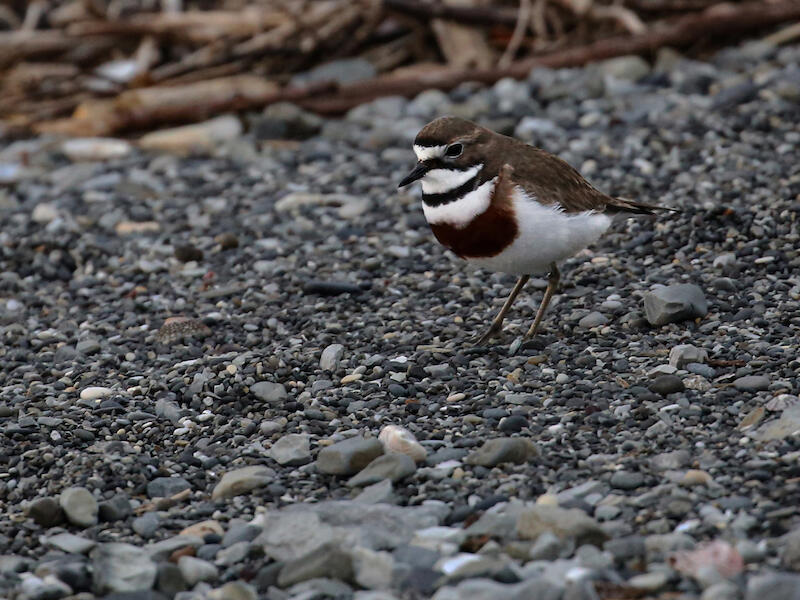 | Banded Dotterel | M | You are lucky that you have better access to seeing these birds in your area than we do up here. They are cute little birds with interesting markings which you have captured reasonably well here. Your exposure on the bird is quite good with some good feather detail evident in the white areas although I would have liked to see you make some selective exposure lifts on some of the darker areas of the bird’s body. The environment is typical of this bird’s inland habitat but I suggest much of it could be cropped out without loosing this essential environmental information and thus enabling us to view the subject in closer focus and detail. All the elements are there – it just needs a little more work to lift this image to a higher level. | |