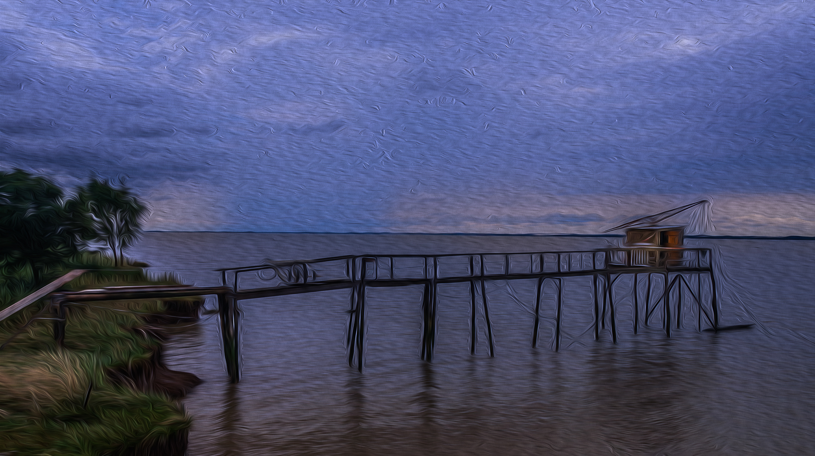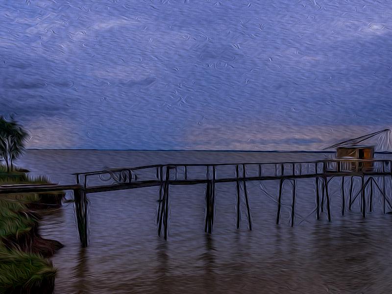 Carrelet for fishing on the Atlantic coast - This is also a simple app to use however it really suits this seascape. Probably has made an average photo into something you might hang on your wall. Good choices. My dictionary tells me a Carrolet is a flat fish?? Your title suggests something different?/