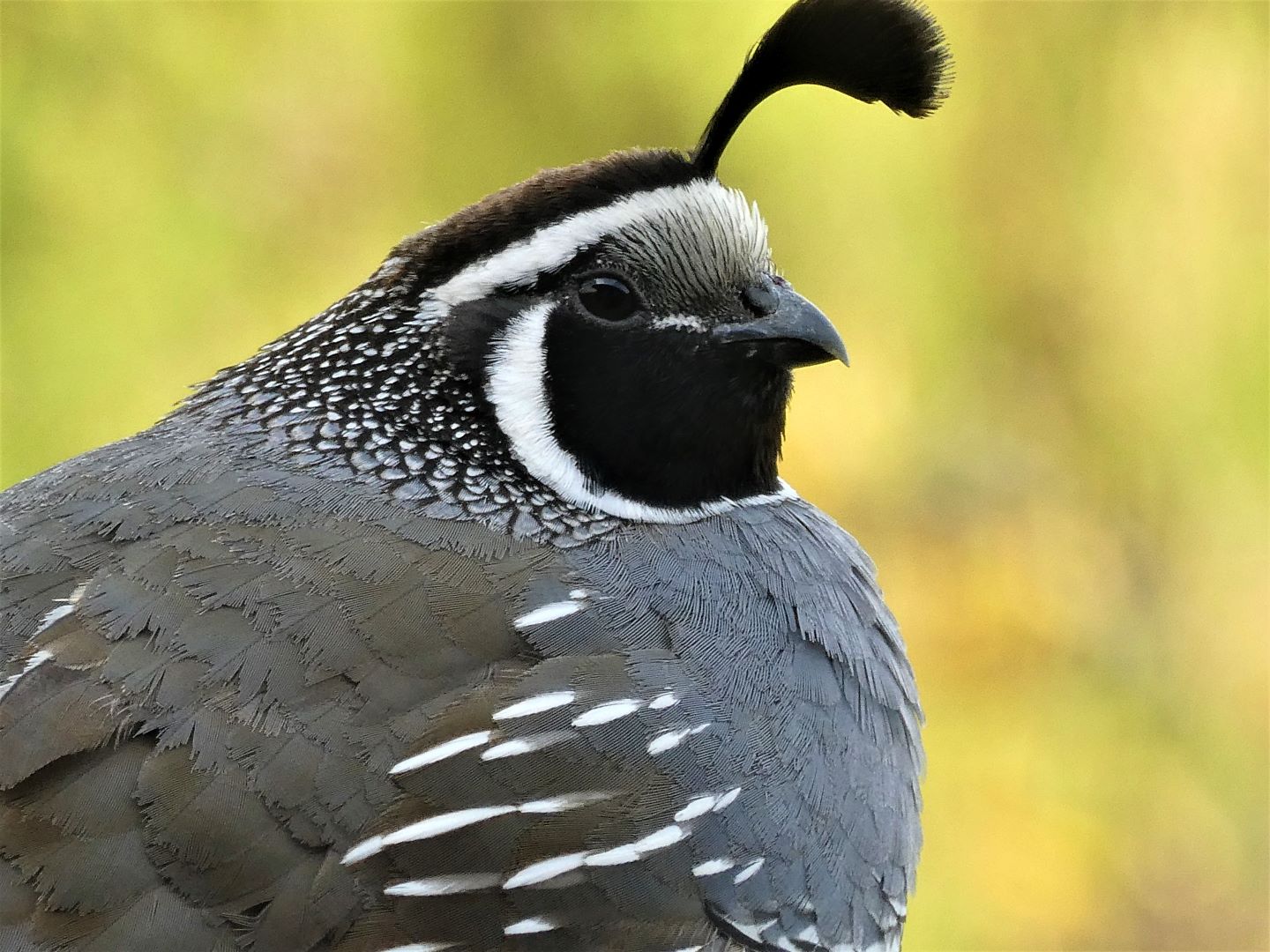 The Handsome Quail - Beautiful Photo. However try not to cut off the top of his crowning feathers. Great feather detail and plain background. Well done. There is a tiny catch light in the eye; for a C grader you’ve done very well