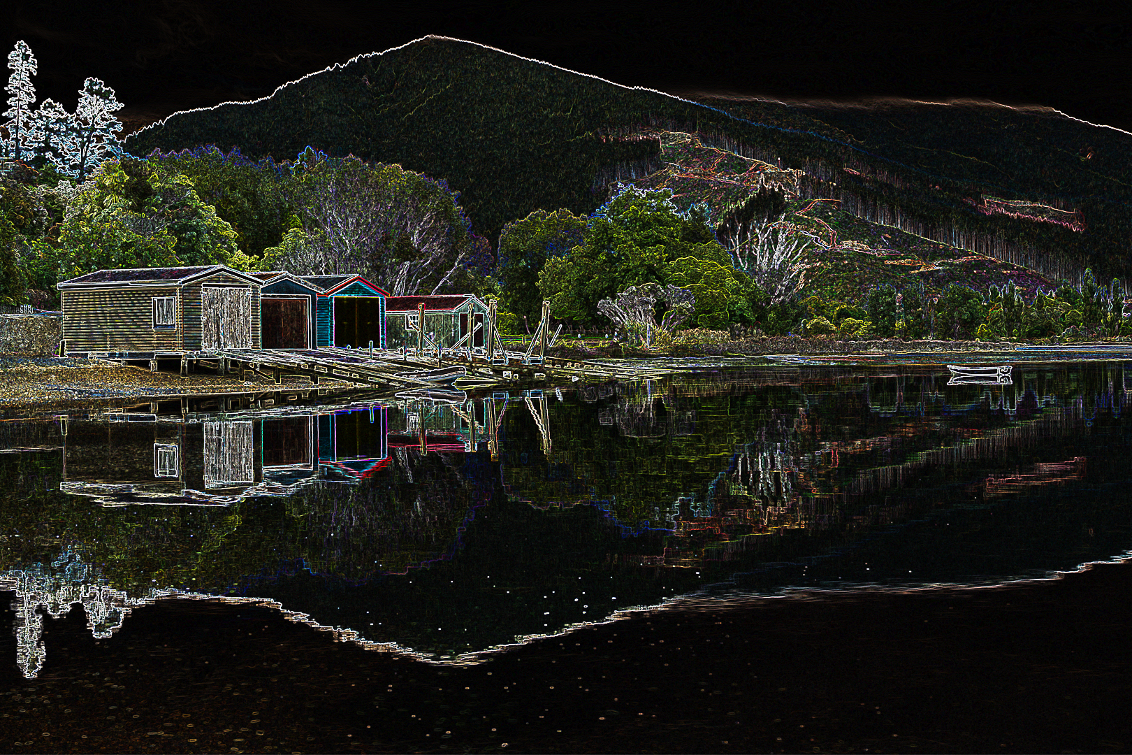 Boatshed Reflections - Very creative choice of software, it works well for a creative subject. The original photo is I imagine also quite lovely. This is a good composition.