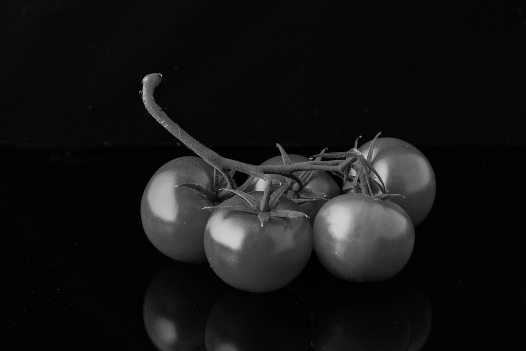 Tomatoes - another subtle form of creativity…the tomatoes now look like a metal sculpture which I quite enjoy. This screams out for a very fine border 1mm so we know how much is the background when projected on black. There are a few small spots you could clone out but I do like the image.