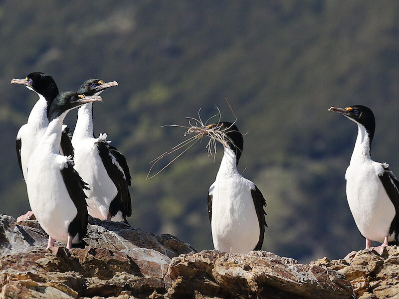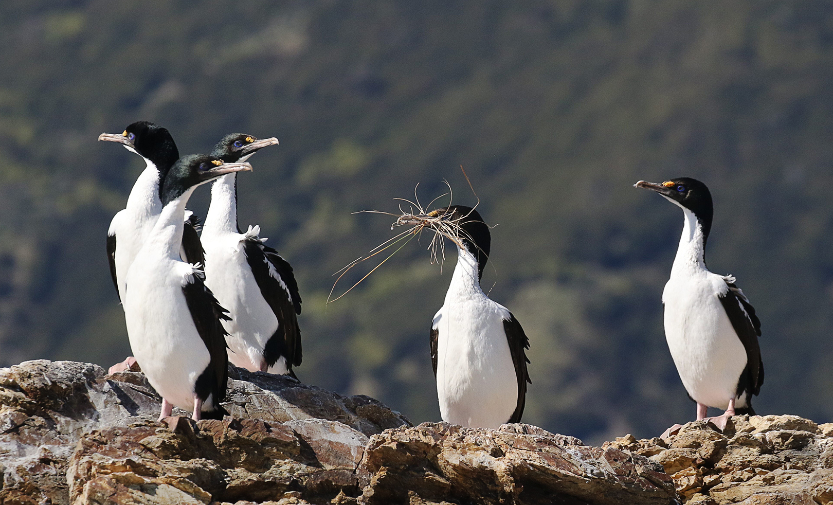 | King shags | Hons | What a gorgeous shot with great composition and well exposed for the black and white of the shags. I love the framing of the centre bird by the other birds looking in, and the indifference of the far left bird who is just not interested. |