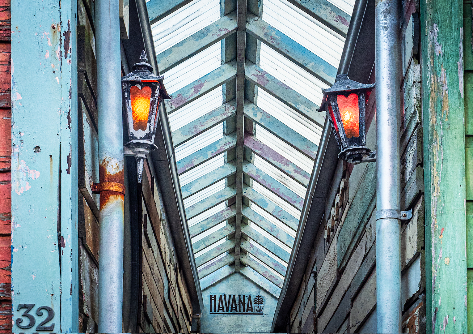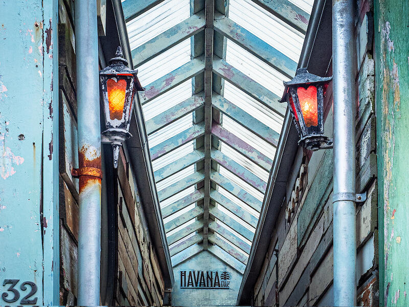 | C | Two lamps | M | I feel this image is about lines, textures and a sense of place. The number 32, in conjunction with the Havana Bar sign, combine to provide a kind of welcome porthole. The lamps, being illuminated, suggest a friendly and inviting environment lies within. I enjoy the textures on the wooden walls accompanied by the flaking paintwork. I did feel that the whites in the skylights were a little bright. They tend to draw the eye away from the two orange lamps which are the intended focal point of the image. I suggest the photographer considers trying to reduce the brightness in the skylights as this would shift focus back to the two lamps. I’m not too sure what happened in the bottom lefthand corner where there is a slither of something odd which runs along the bottom edge to about the midway point. I wondered if this might have been a crop which was incomplete. I very much enjoyed the perspective selected by the photographer. It really complements the image. With a little more attention to detail, I feel this image could do well in future competitions. |