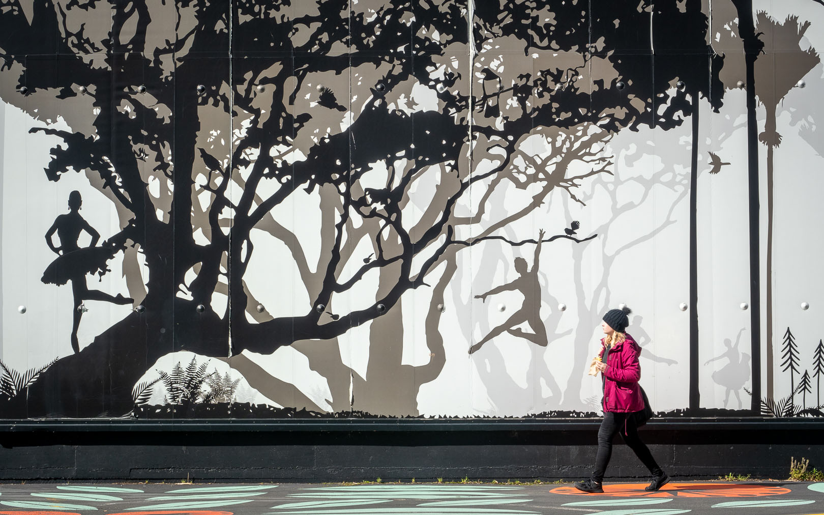 | C | A splash of colour | M | The simplicity of this image conceals the ‘quick’ eye of the photographer who waited for the correct moment to release the shutter. The woman walking into the scene, seems to be admiring the artwork, whilst eating a sandwich. In my view, she is placed neatly on a third to enhance the composition. The artists’ work adds two well placed silhouettes of ballet dancers. Together these increase the main character elements to 3, which again adds to the compositional production of this work. I did wonder if presenting this image as a monochrome image might reduce the clash of colours between the pink jacket and the orange circle which the woman is walking through. However, on reflection, that would move the image away from it’s title. This is a really good example of ‘Street Photography’ and the story is well captured. |