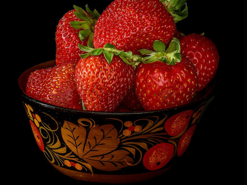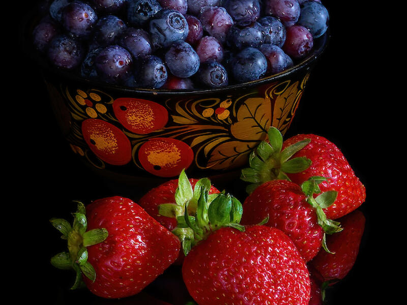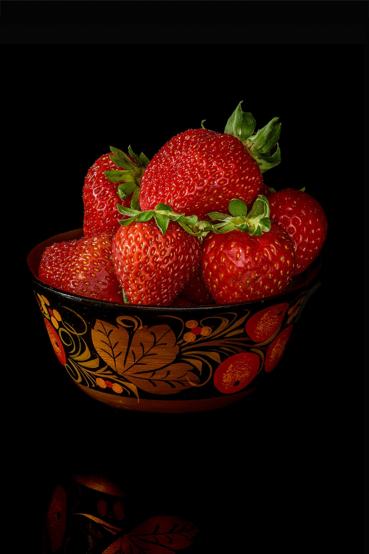 | A | Red, Ripe and Ready | M | The strawberries in my garden did not do as well this year due to the dryish weather conditions. However, these look fresh, plump and desirable. The lighting has been well executed to avoid specular highlights, whilst still emphasising the red colour of the fruit. The black background works well and tends to support the pretty bowl with it’s complimentary artwork. Because the reflection is not connected to the bowl and is located a short distance away, I felt this tended to draw the eye out of the scene prematurely. Possibly changing the perspective so that the camera angle was slightly higher, might improve the composition. |