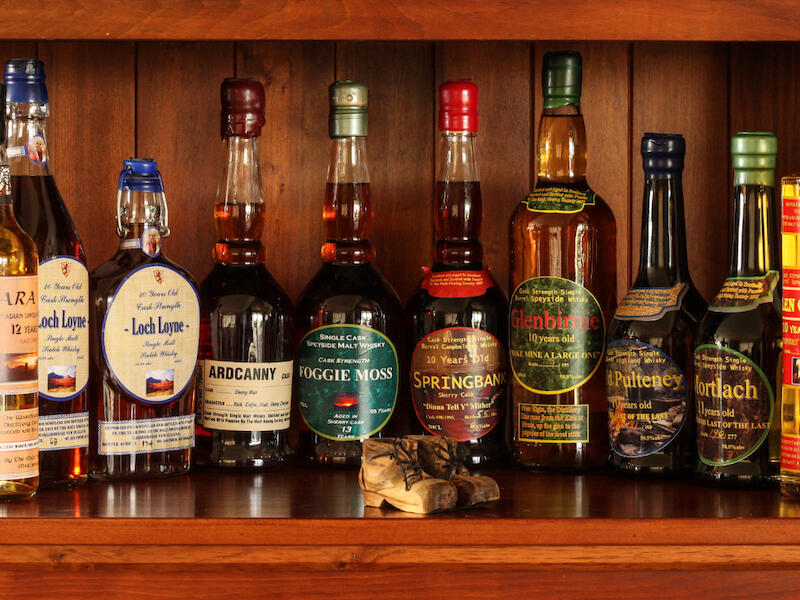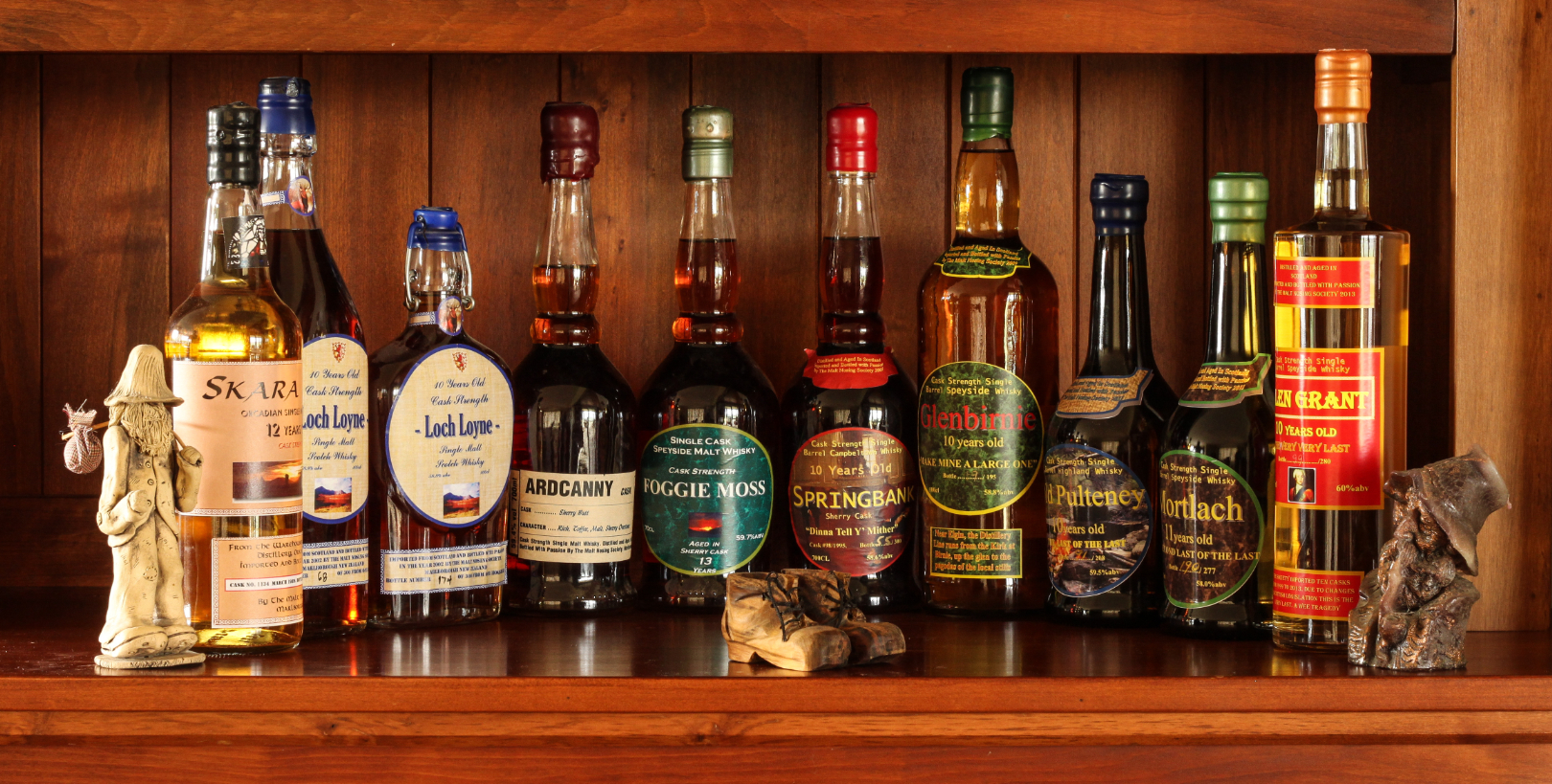 | A | Spoilt for Choice | H | Wow! What a stalwart collection of aged single malt whiskies! I can’t wait to finish my appraisals and head off to the drinks cabinet for my 5 o’clock ritual. However, back to the task in hand. - This is a very well crafted image. The bottles are neatly arranged in a semicircle and set on a wooden shelf. The rich warm glow of the wooden surfaces seems to mirror the blend of malts on display. The scene is well composed and the three small ornaments add extra interest. The two bearded characters are both facing inwards which helps to retain the viewer’s eye within the frame. Exposure and lighting are both complimentary to the subject matter. |