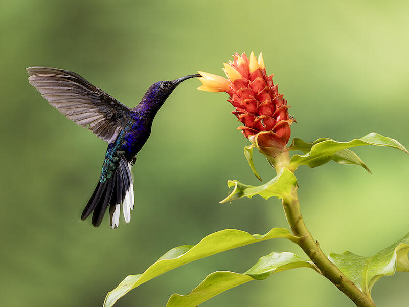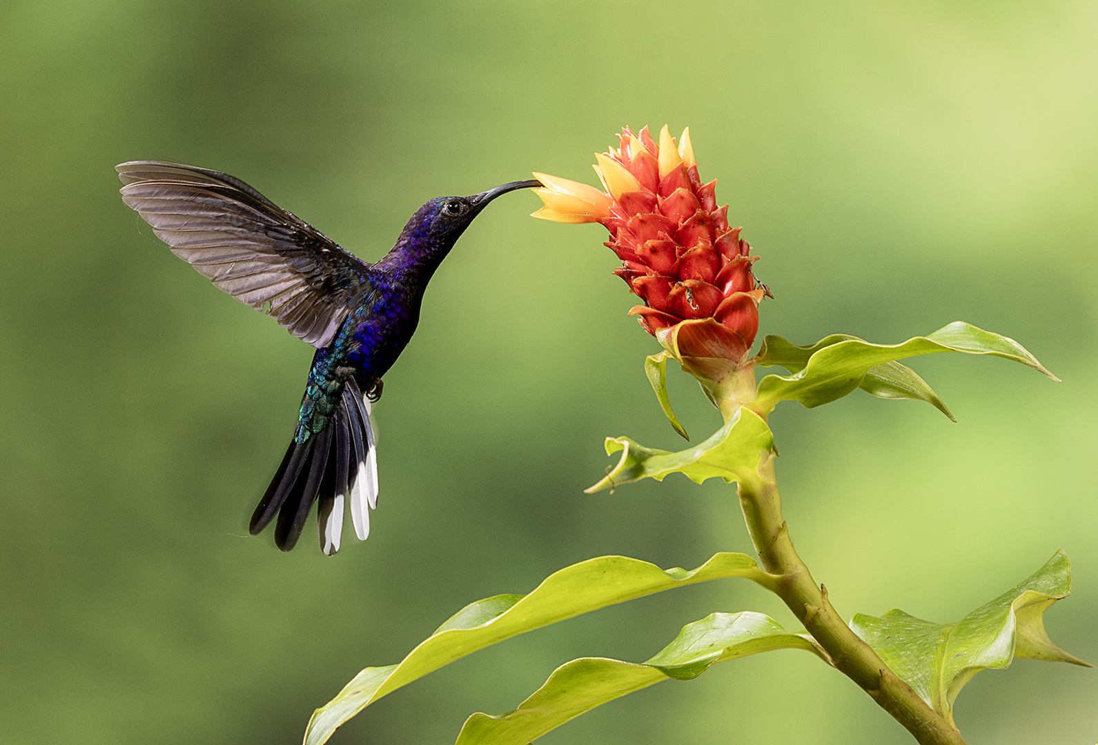 | A | Violet sabrewing hummingbird | H | I believe the photographer has demonstrated considerable skill within this image. A suitably fast shutter speed combined with an appropriate ISO and Aperture settings have helped to freeze the action of this fast moving creature. It allows viewers to pause and see a moment in time which they might not otherwise see. The subject matter is sharp in all the right places whilst the background is both complementary and unobtrusive. The only icing on the cake which might have improved this presentation, would have been the inclusion of the ends of the two petals which are cut by the bottom of the frame. Having said that, the photographer has made a strong and remarkable action shot of this humming Bird. Thank you for allowing me to comment on this image. |