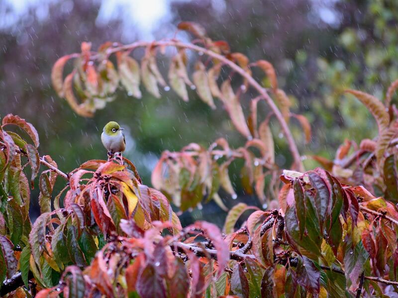 Lovely image and you’ve caught the raindrops and droplets on the leaves making it interesting for the viewer. The top branch frames the silvereye perfectly. In my opinion you could strengthen the composition by cropping the right hand side after the end of the branch that frames the bird. Watch those highlights at the top of the image. Bright patches draw your eye away from the main subject, so I would either tone this down in post-production, and if it’s not a nature image, would try cloning it out completely. The Story has been told with with the lovely autumnal colours and lovely lighting on the Silvereye |