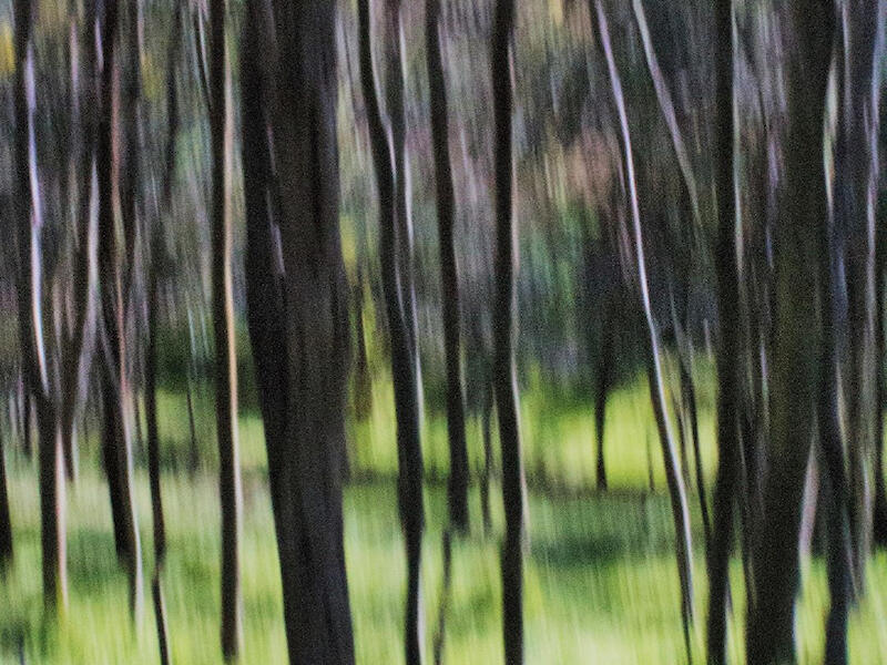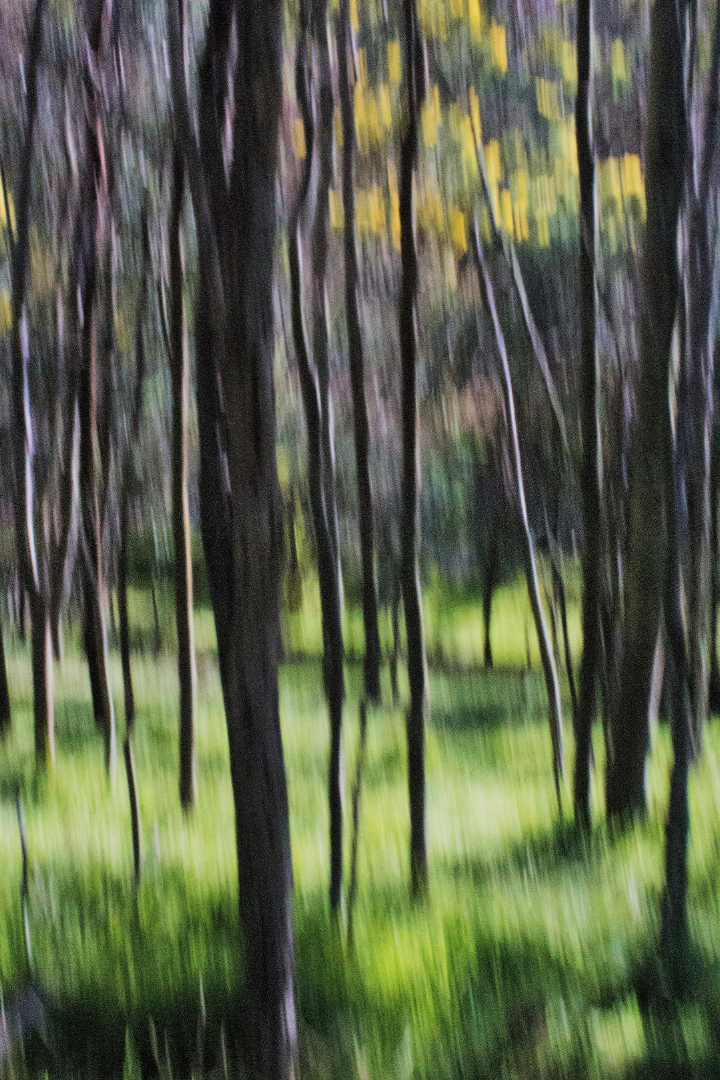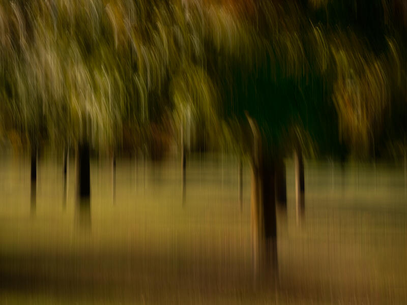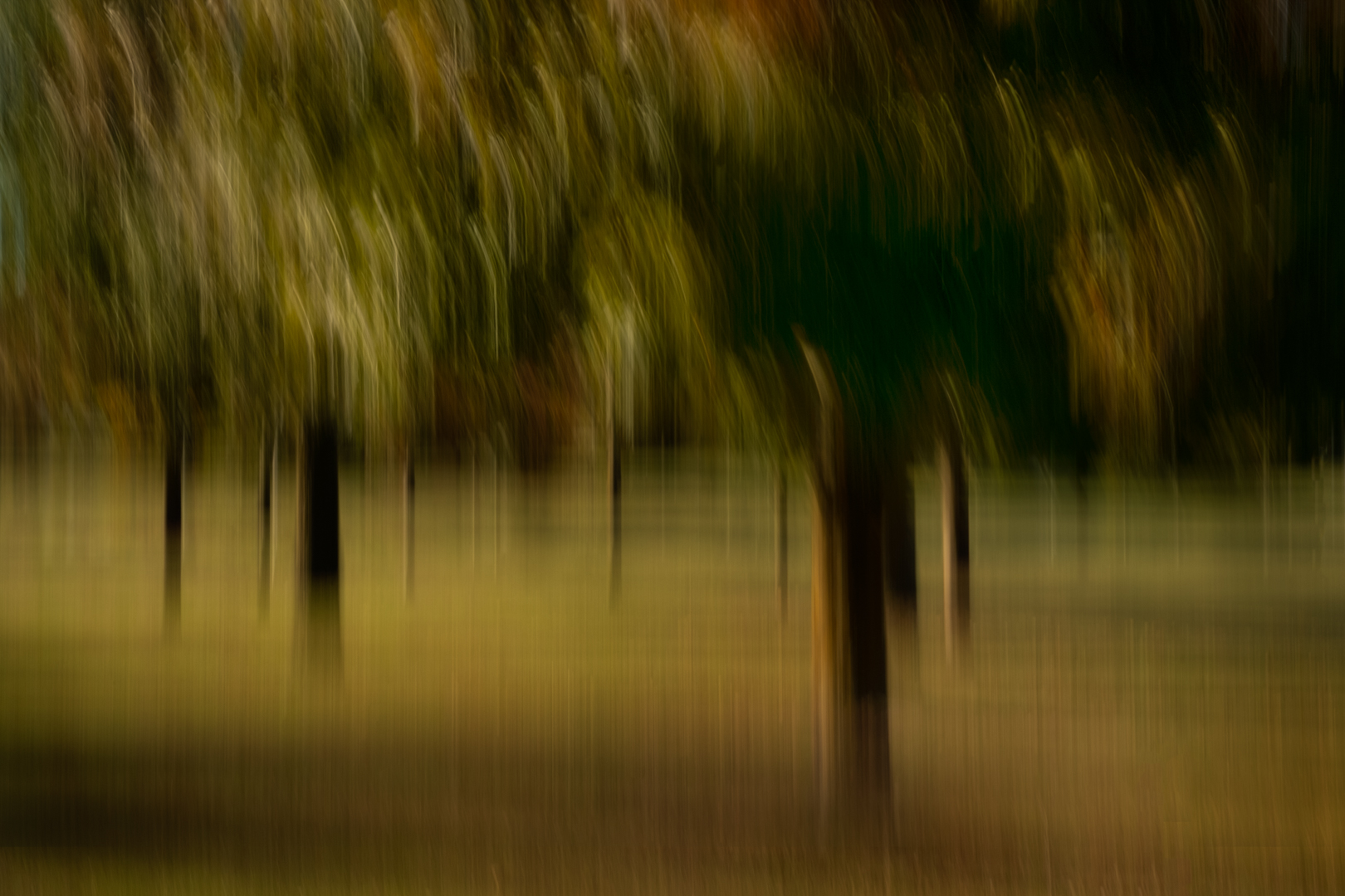 Lovely ICM movement on the trees. It actually looks like two movements – up and down on the trunks and grass, and side and down on the leaves, which gives the viewer a feeling that it that the evening may not have been completely still. Composition is strong with the closest tree on the right 3rd . This image works because of the light and dark flowing through the image. Often things we cannot see, but imagine, can make an image stronger |