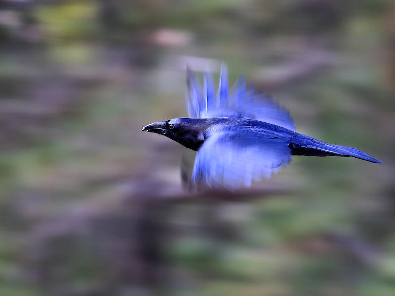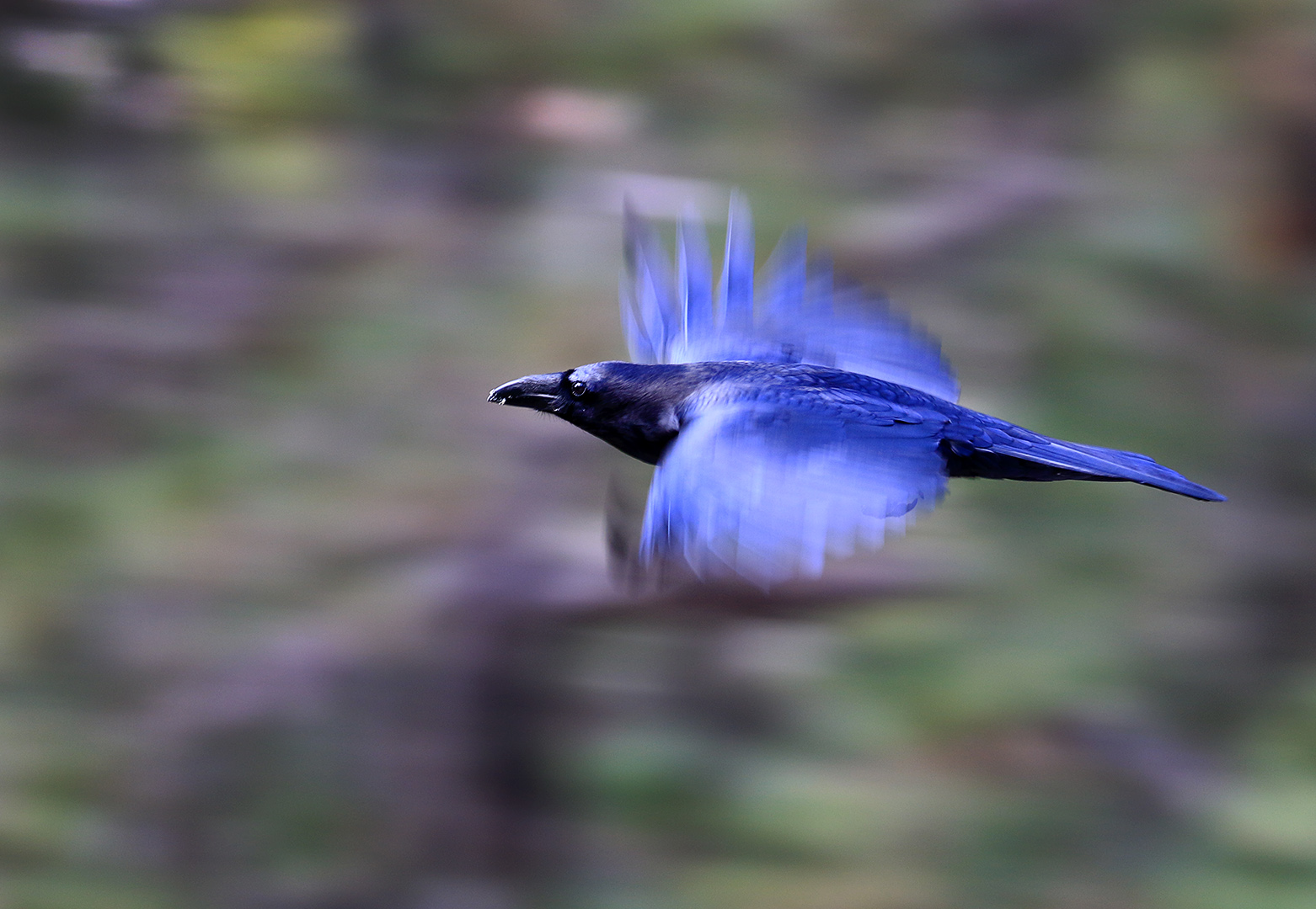 This is an image that has been panned along the bird in flight, keeping the bird eye and beak in sharp focus and the background showing movement. Beautiful colours and the movement in the wings are lovely. Good catchlight in the birds eye. Composition is strong and you have left room for the bird to fly into. |