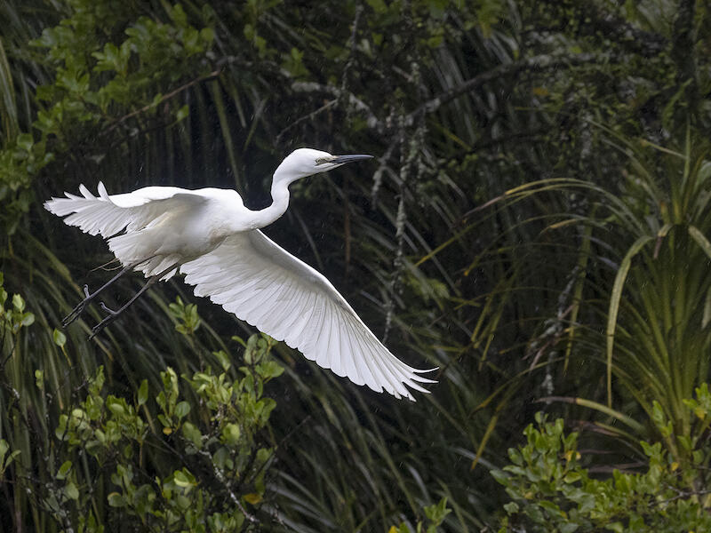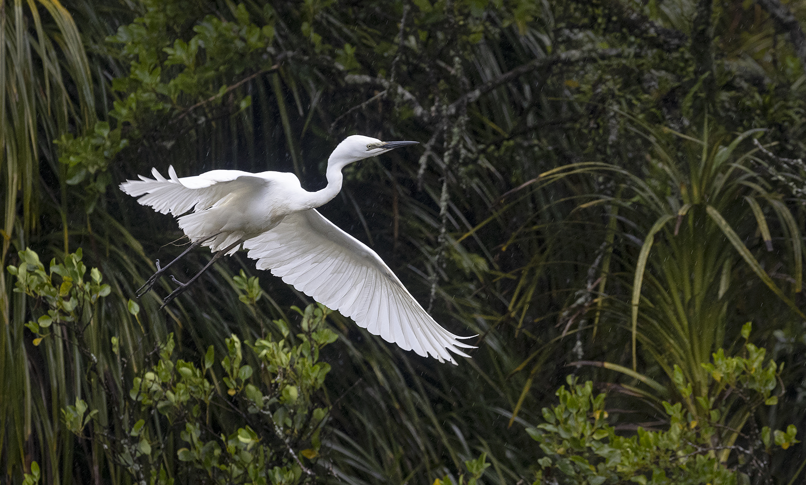 Great capture of the Kotuku flying in the rain! Lovely sharp focus and with lots of detail on the feathers and feet. Nice dark background that makes the bird stand out. In my view, the lighting on the right wing is blown out and you’ve lost feather detail there. Bringing down the highlights in post production may correct this. Strong composition |