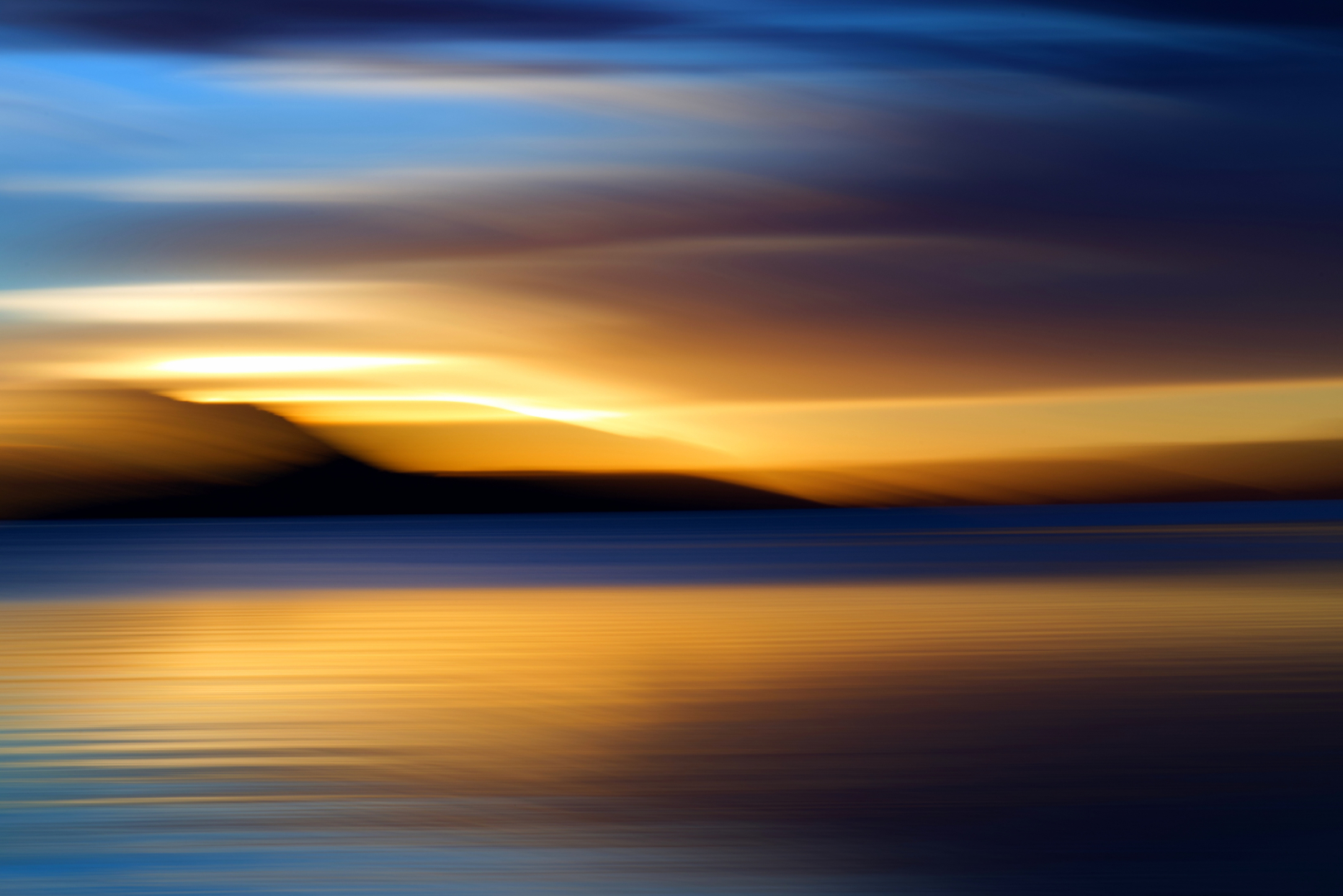 Lovely ICM with beautiful colours throughout. Lighting has been handled well and you have a strong panoramic format. In my view, your eyes follow the sandbar of this image and then this leads you out of the image. There needs to be some other focal point to keep your eye in the image. Try upping the contrast to bring out more definition to further enhance this lovely image. |