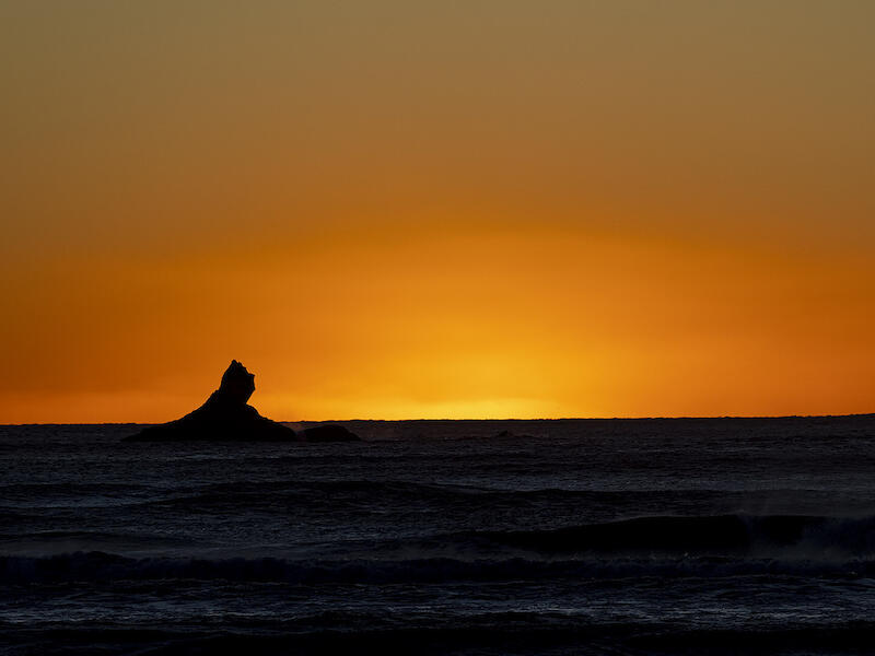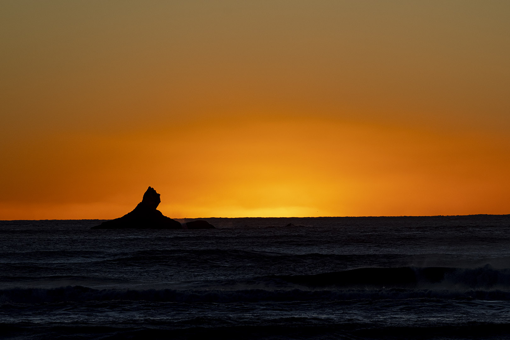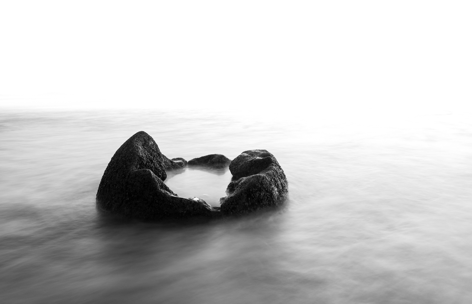 I love the title. The colours and composition are spot on. There appears to be green and red fringing on the two left hand rocks. Post production could eliminate these.