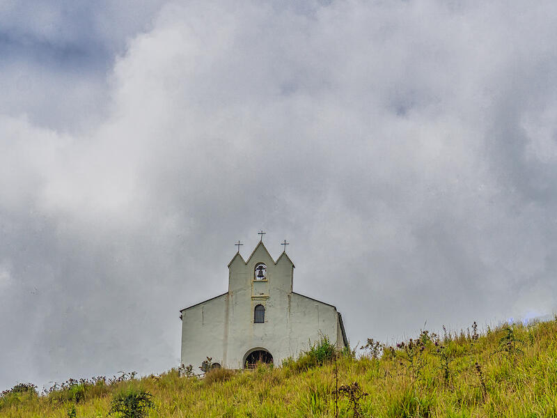 chapelle de st. Antoine de Musculdy Pays Basque France Merit The Church, perched on the grassy verge against the fluffy white clouds is very inviting. For a stronger composition I would suggest a crop off the left, putting the church on the third. Try it and see if you like it.