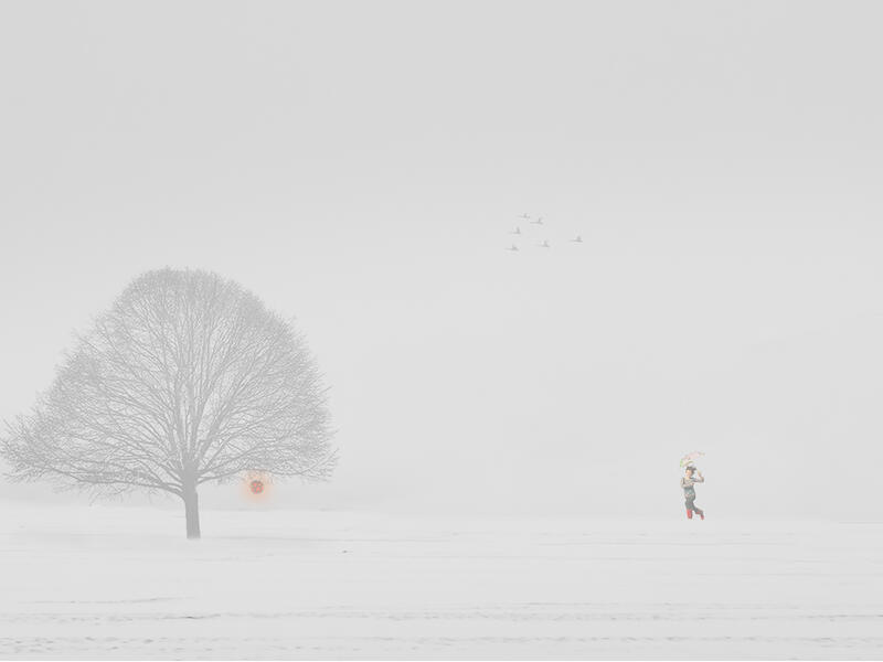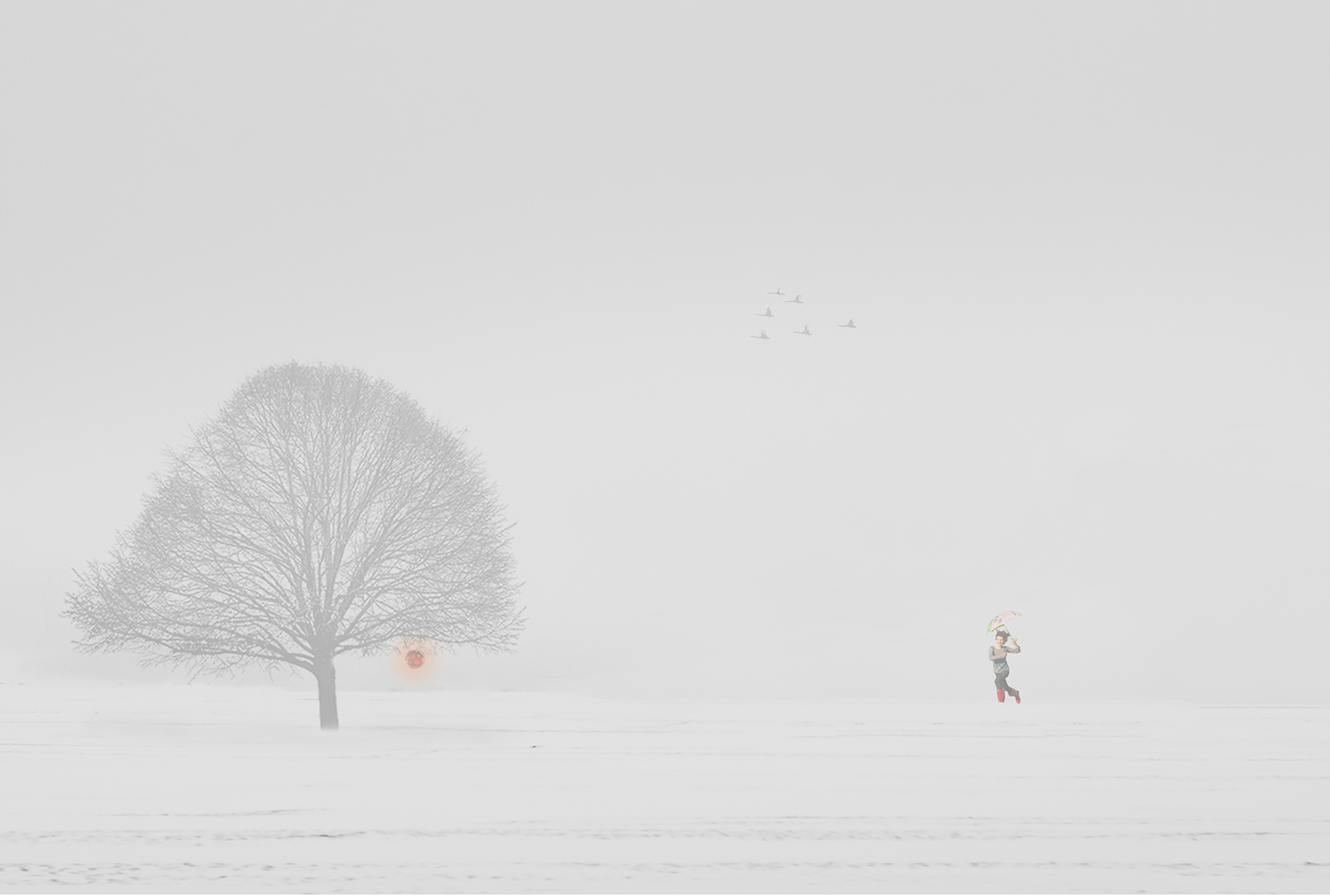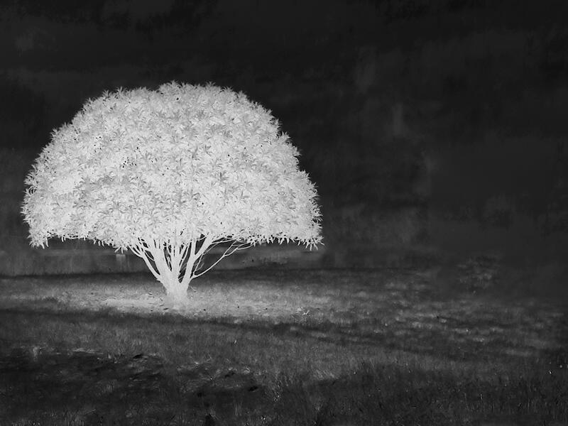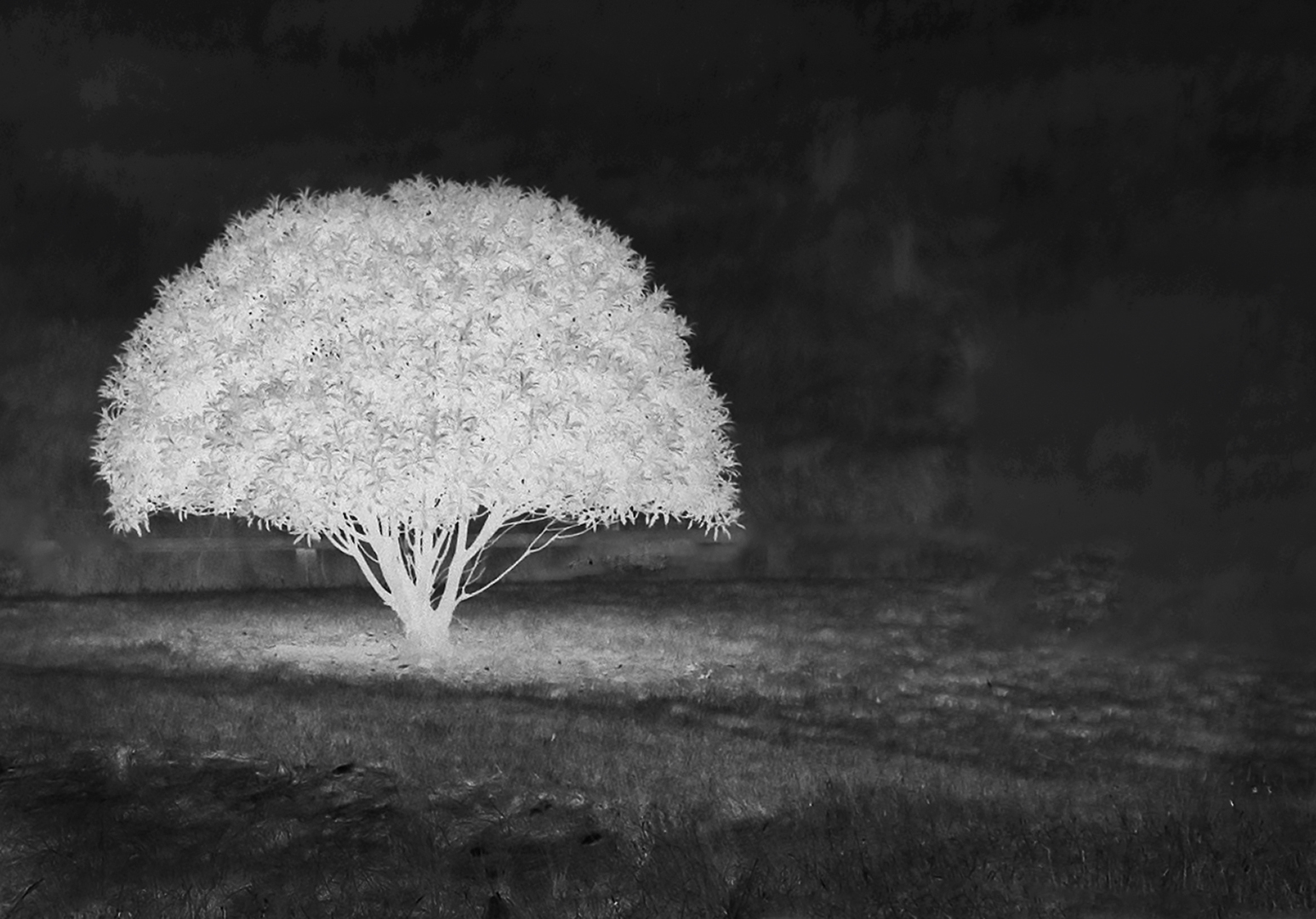 This infrared shot works well as a minimalistic image. Your eye is immediately drawn to the bright tree. Love the negative space. Good job trying something different.