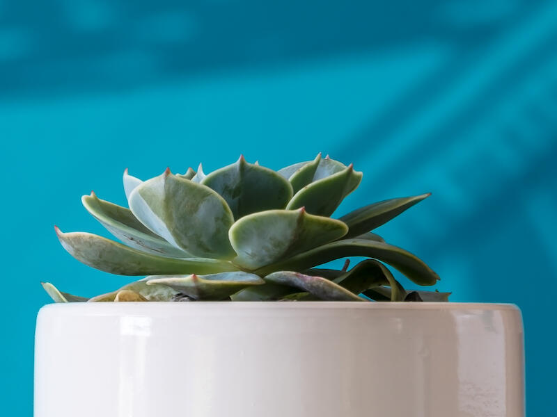 The graphic nature of this image really works with its bold elements and colours. The succulent and pot are sharp. I love the interesting shadows in the image. There is a bit of ghosting on the right edge of the pot that could be handled in post production. Good work.