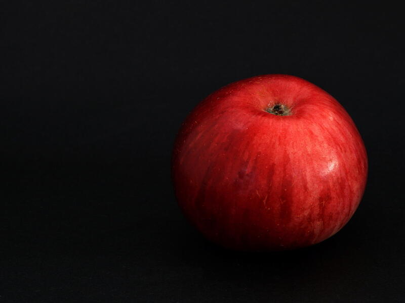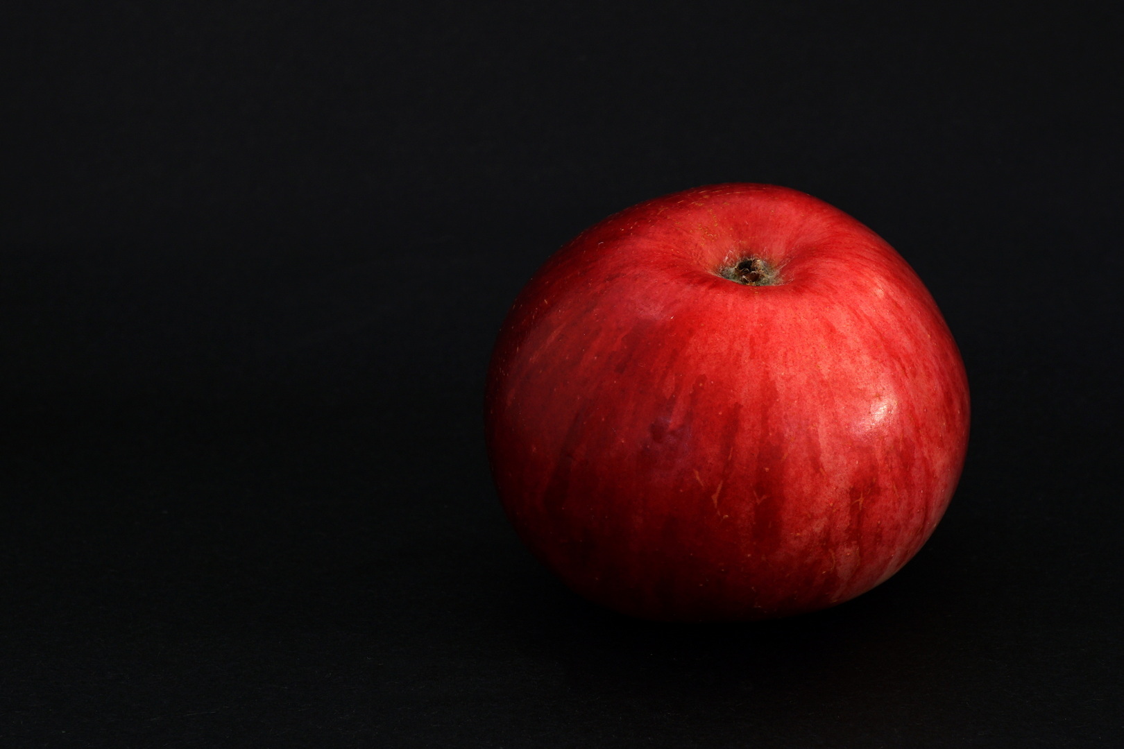 This luscious red apple stands out nicely against the black background. It very sharp. I feel like I could touch it. Well done.