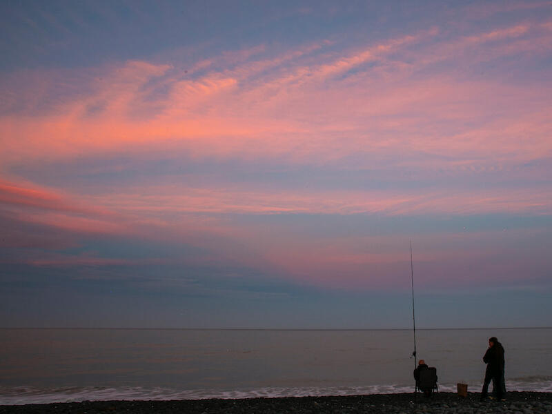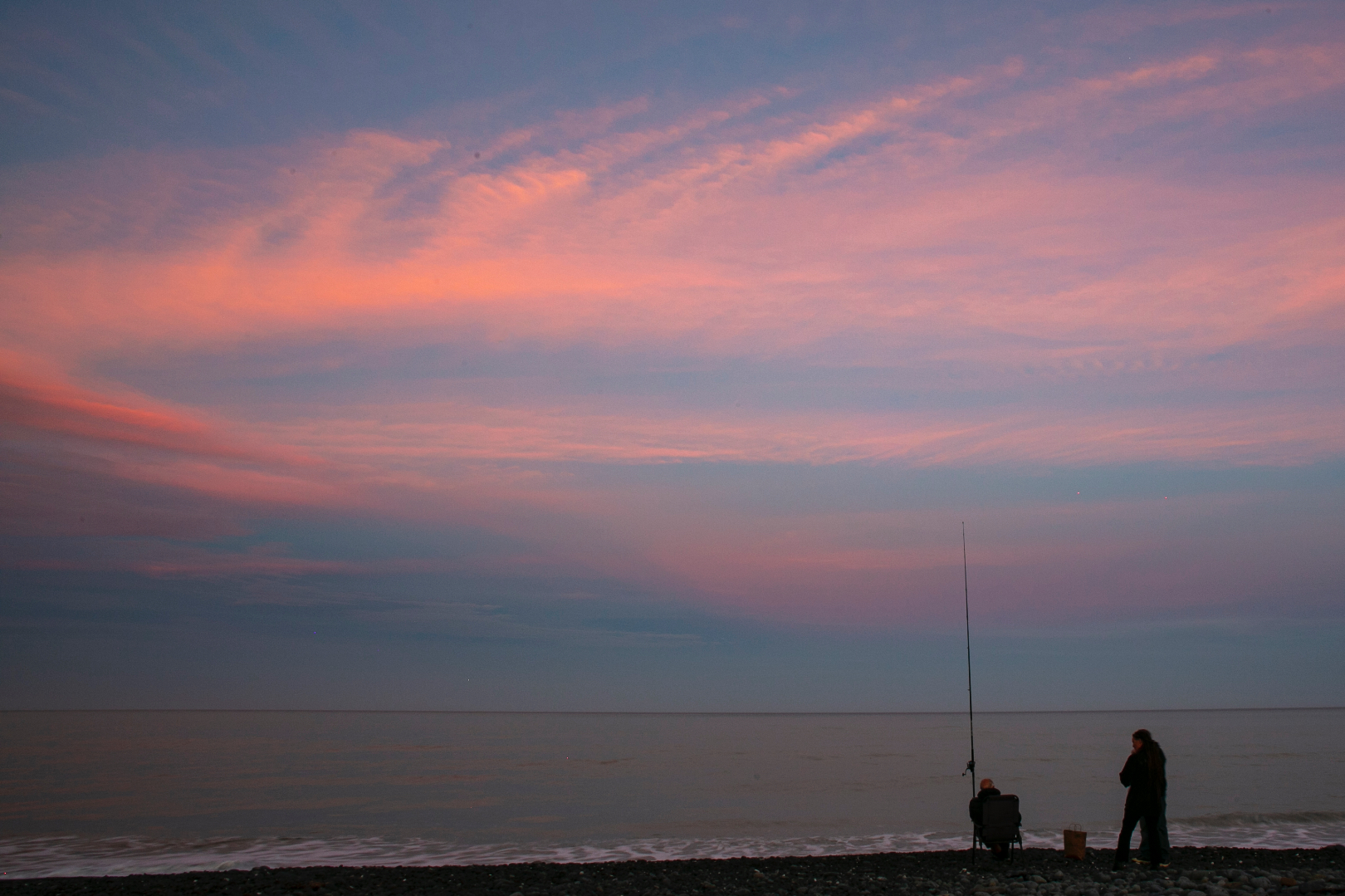 Many fishermen could relate to this story. Sometimes I feel they just go fishing to enjoy the company of a mate. If they catch a fish, it's a bonus. The colours are beautiful and tranquil. The composition is spot on. Careful about spots on your sensor. This is a great story.