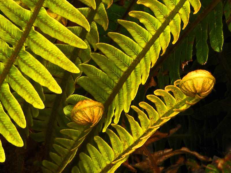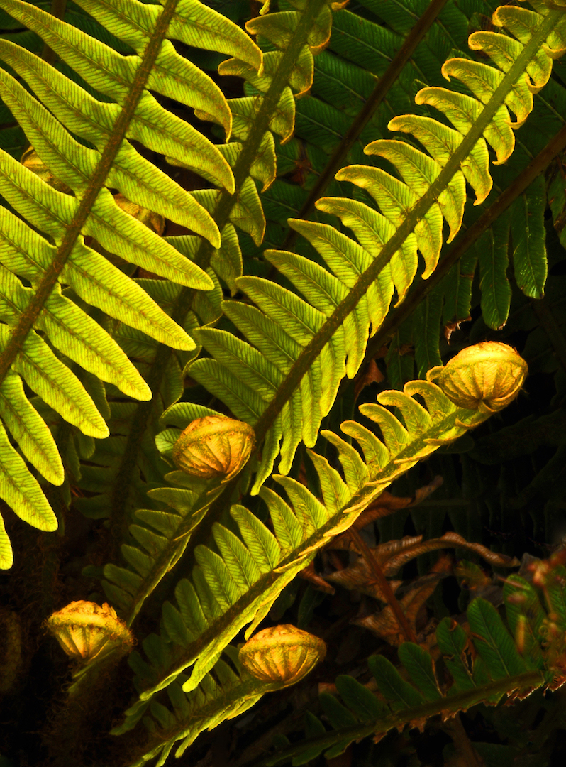 New Fronds of Blechnum discolor. I think the interest in this image lies in the bottom half, really, but the, the bright, where the, where the fiddle heads are but that's where we're losing detail in the shadow and I'd have liked a composition where you got down closer to looking at the side of these ferns with the, the furled koru and capture those and give us more detail at the bottom, show us the base of the plant. This image feels a bit more pictorial than natural history related. This image doesn't help us a great deal. I guess we could identify the species from this picture, but it's not the best image you could have taken for helping us to identify the species. And that's really partly what natural history imaging imagery is about. So have another go at trying to better represent the species in a natural history way that would help us to more clearly identify the species, which is what we're trying to do.